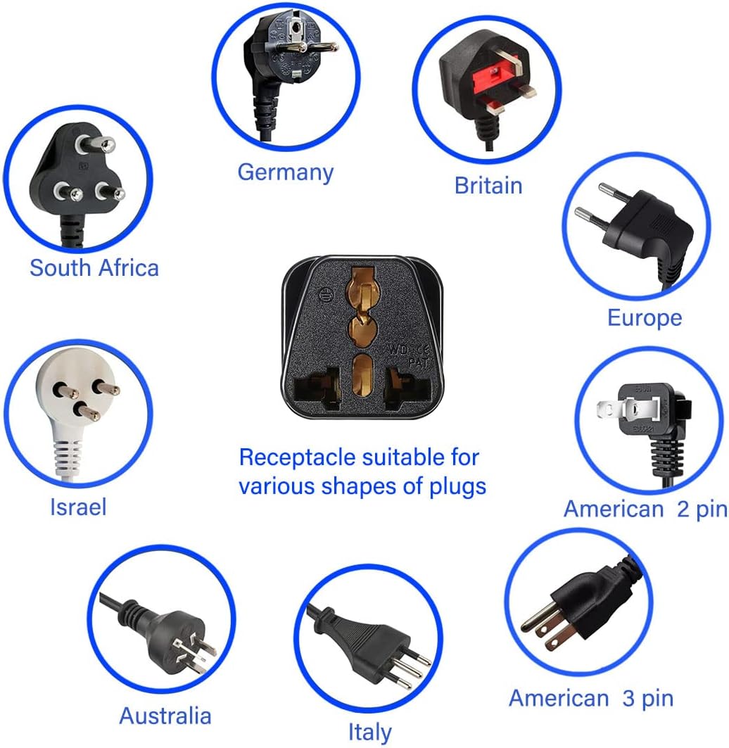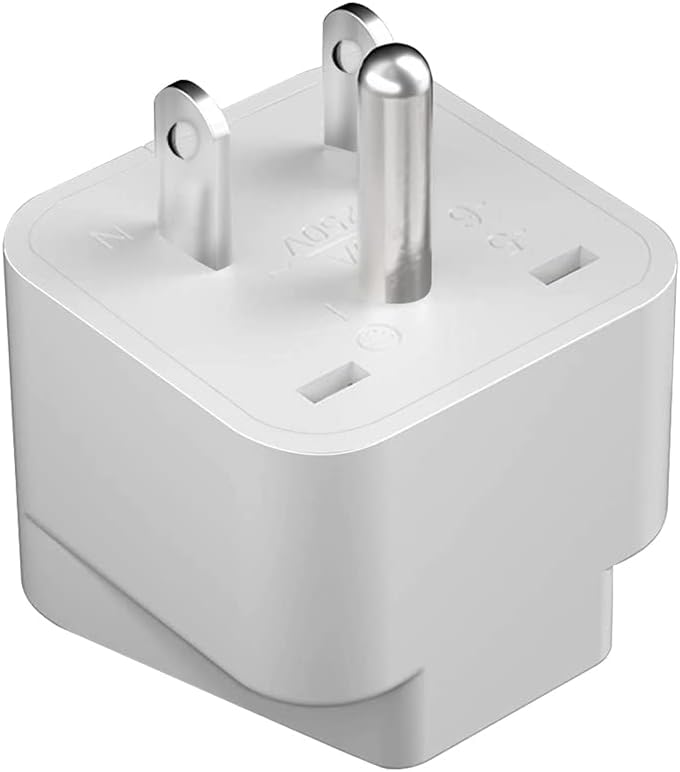 Product function ▶ UK to US & Australia to US Travel Adapter Plug – 3-Prong Grounded NEMA 5-15P Power Converter with 10A/250V Rating, Specifically Designed for Travelers from United Kingdom and Australia to North America, Compatible with Laptops, Cameras, Smartphone Chargers, Tablets, Hair Dryers, and Other Essential Electronic Devices That Require a Secure and Reliable Power Connection When Used in United States, Canada, Mexico, and Other Countries Using Standard US Electrical Outlets.