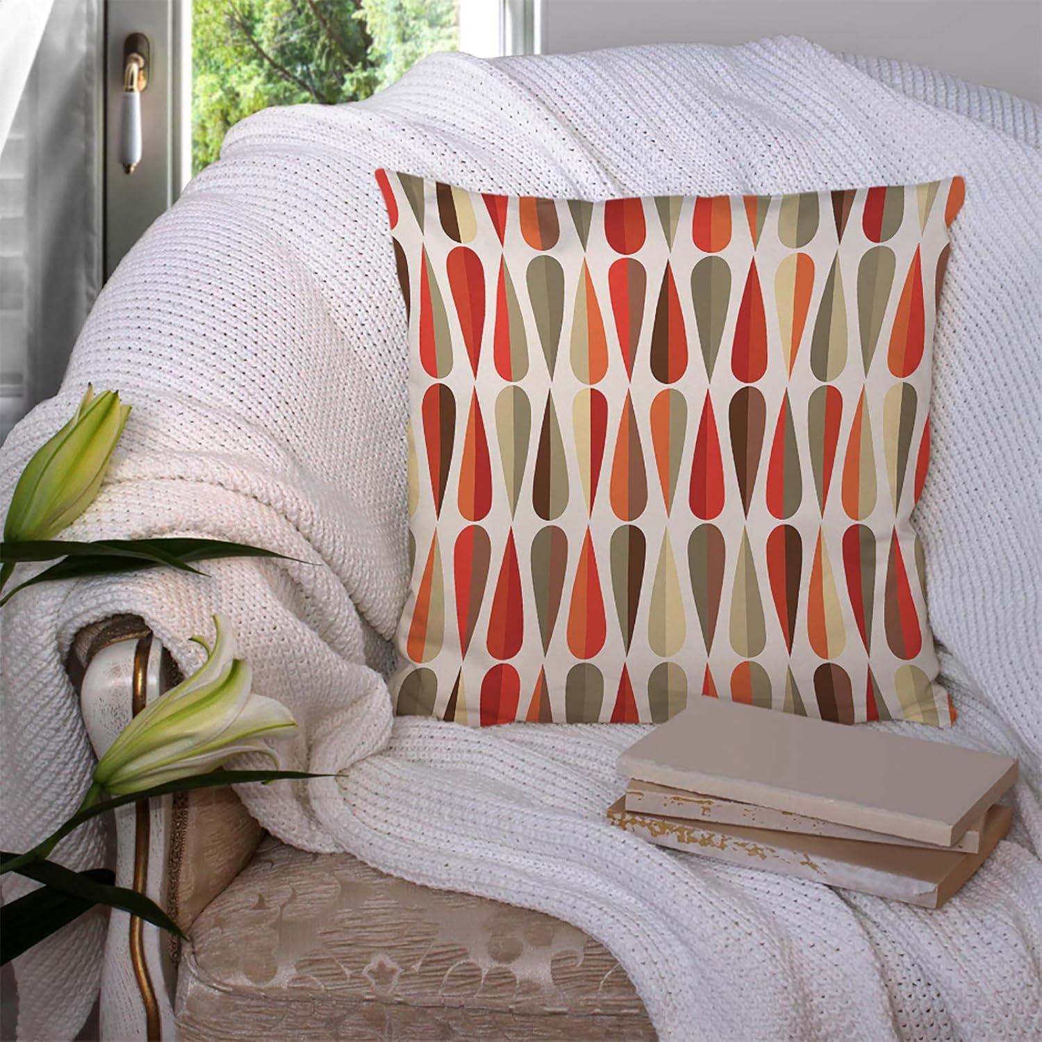 Throw Pillow Cover Abstract Colorful Drop Shapes Cotton Linen Square Pillowcases Mid-Century Modern Style Retro Various Tone Repeating Geometric Modern Cushion Cover Home Decor 18 X 18 Inch