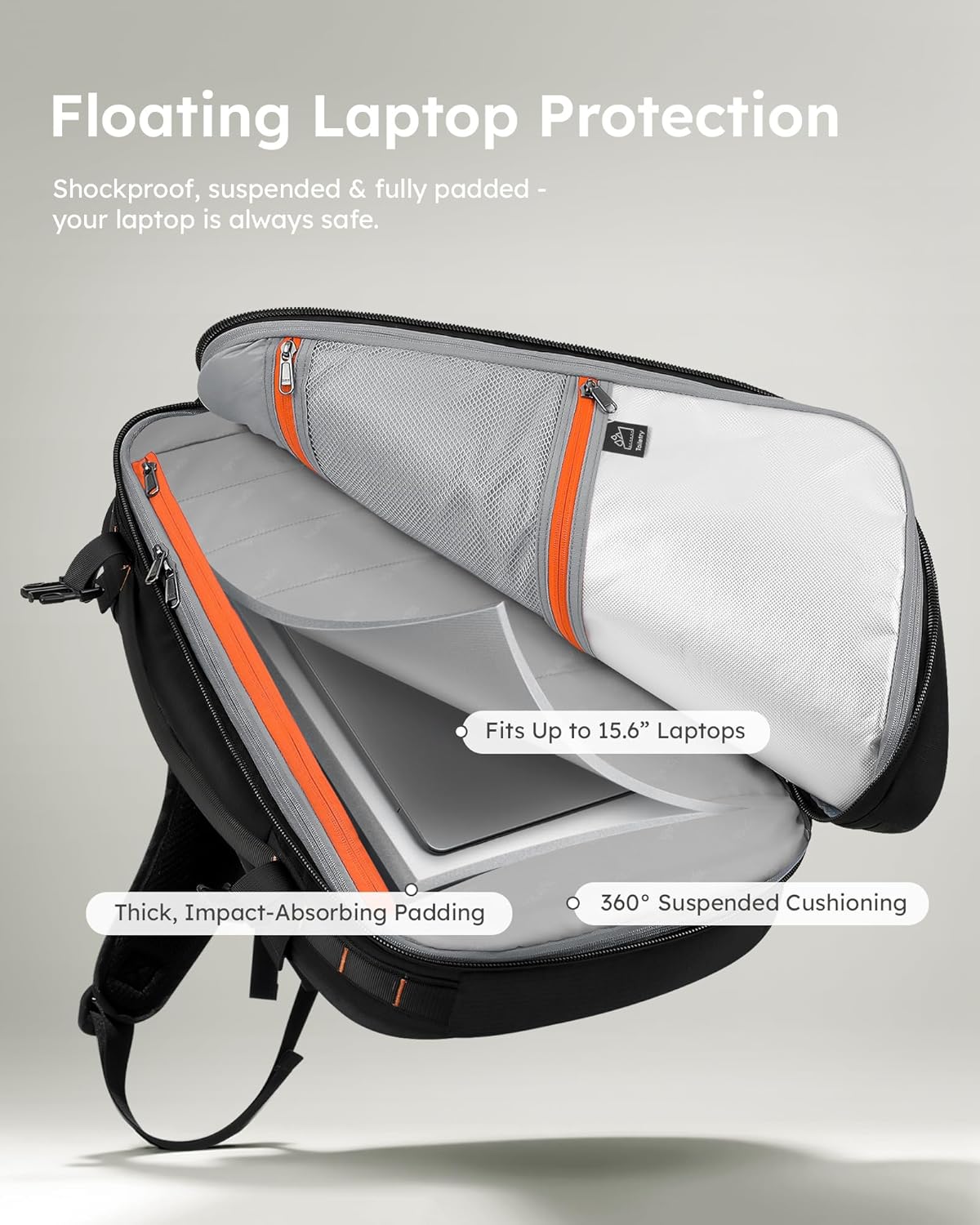 【Quick Laptop Access & Shockproof Protection】Your tech deserves better protection. This laptop backpack features a shock-absorbing, suspended laptop sleeve (fits up to 15.6″) to guard against bumps and drops. The side-access zipper lets you grab your laptop instantly – no need to open the main compartment. Perfect for commuters, students, and busy professionals always on the move.