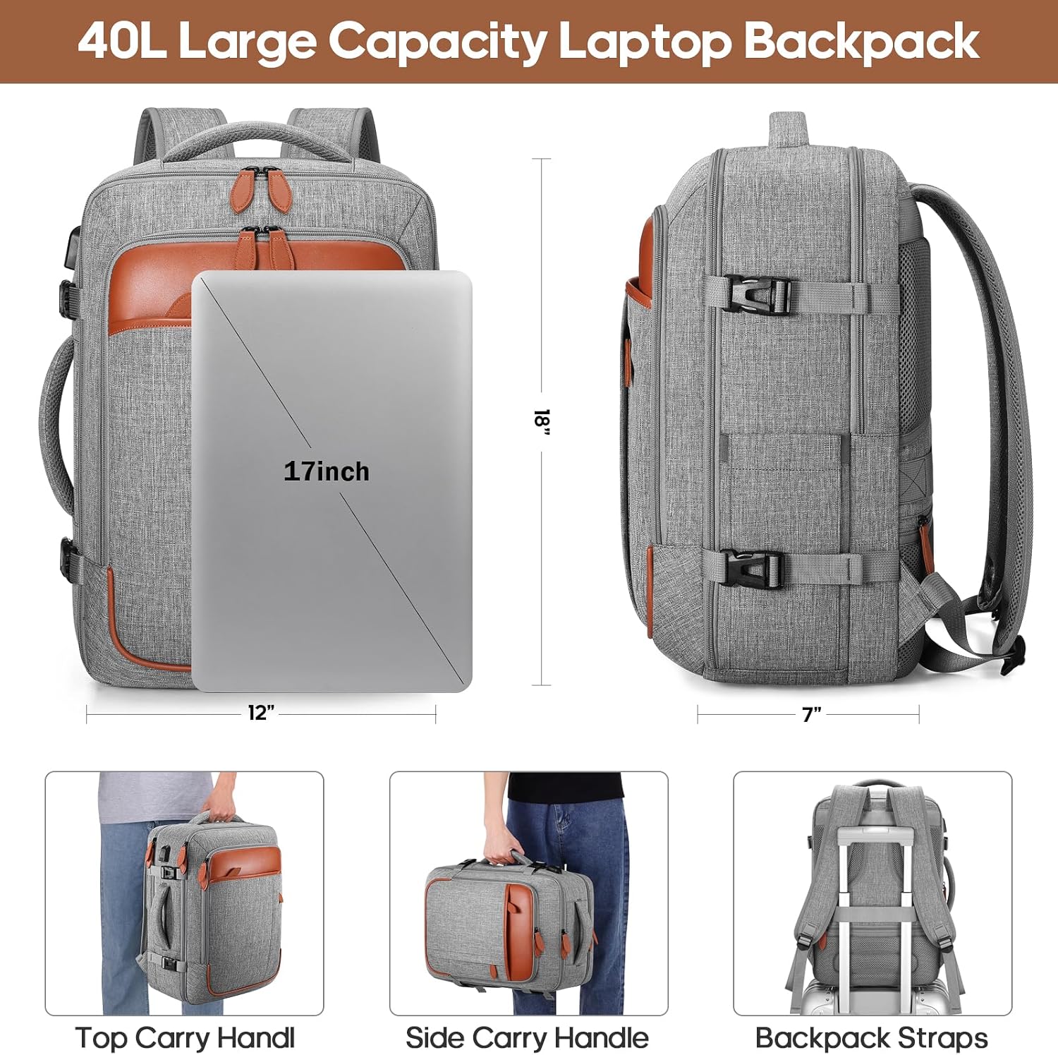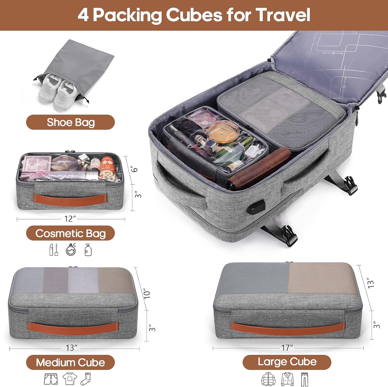 Travel Backpack, 17Inch Laptop Backpack, Carry-on Approved Bag for Men & Women, Waterproof Luggage with Packing Cubes, Shoe Pocket, Personal Item Size for Flights