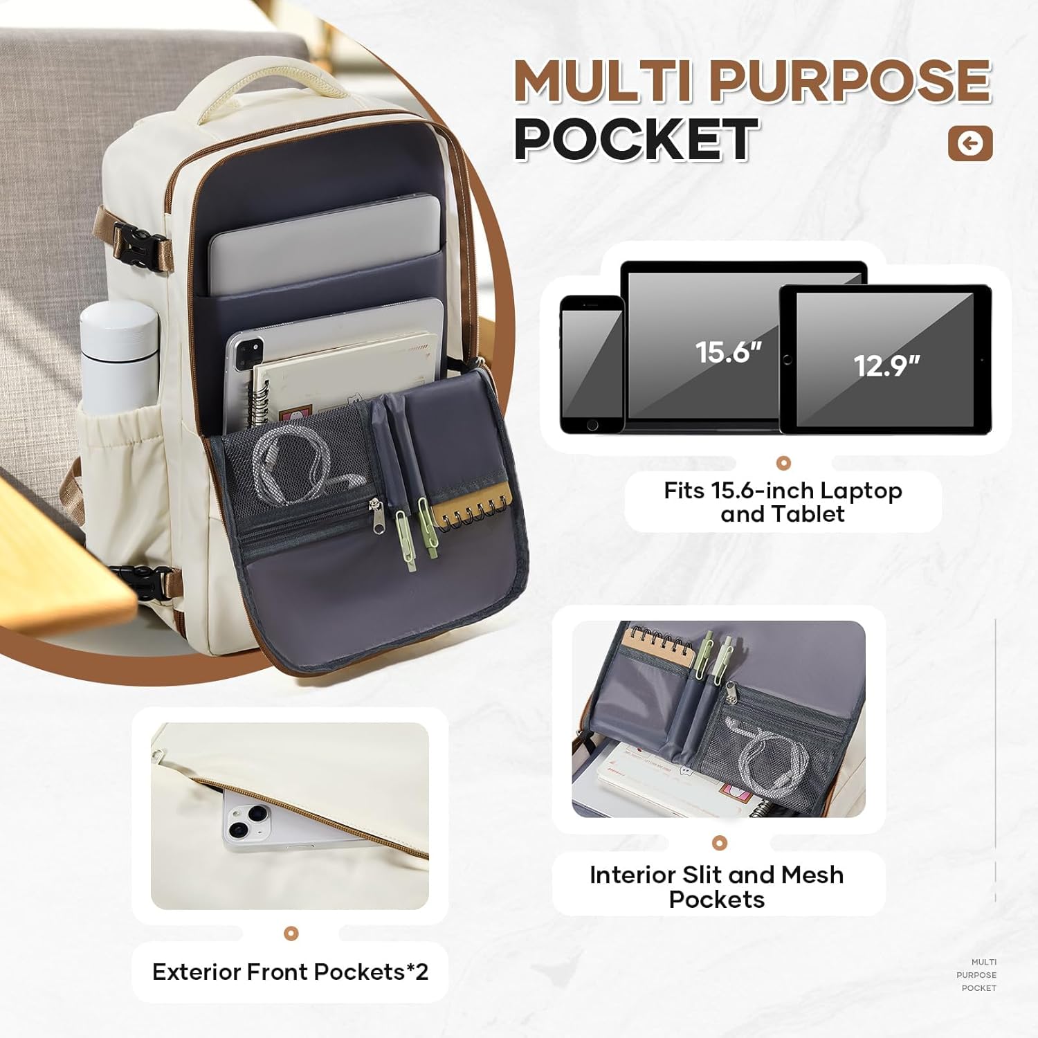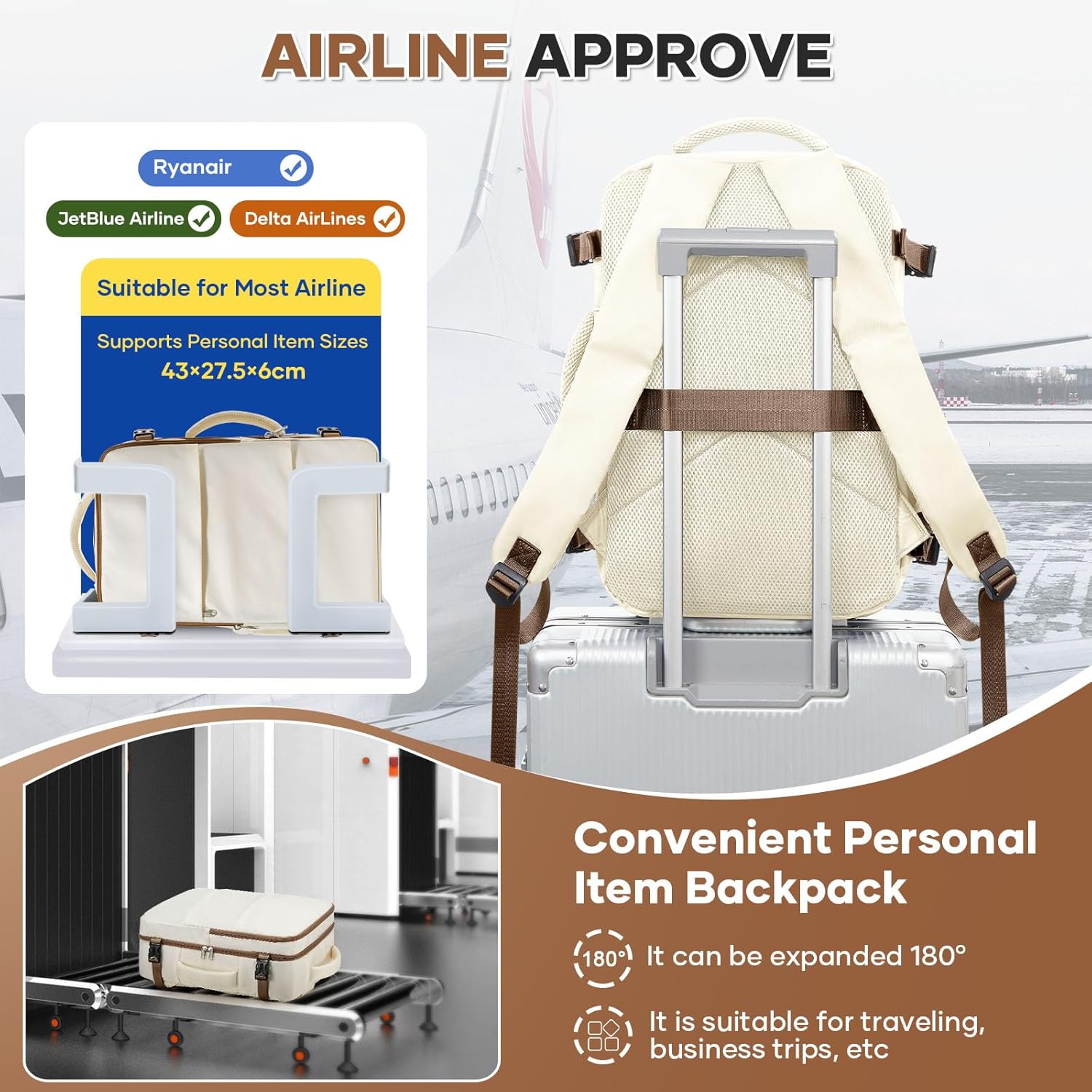 Travel Backpack For Women Men Carry on Backpack Luggage Flight Approved Personal item Travel Bag Essentials Mochila de viaje Laptop College Backpack Beige Brown