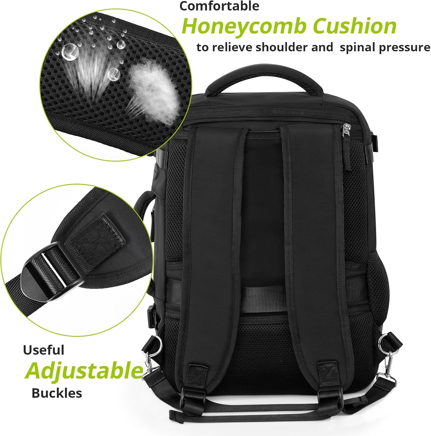 Comfy and Sturdy: Our travel back pack is made of high-quality composite fabric and effective waterproof, Comfortable airflow back design with thick but soft multi-panel ventilated padding, gives you maximum back support. Breathable and adjustable shoulder straps relieve the stress of shoulder carry on backpack . If you don’t want to carry it on your back, you can stow the backpack’s straps and it’s a suitcase luggage backpack