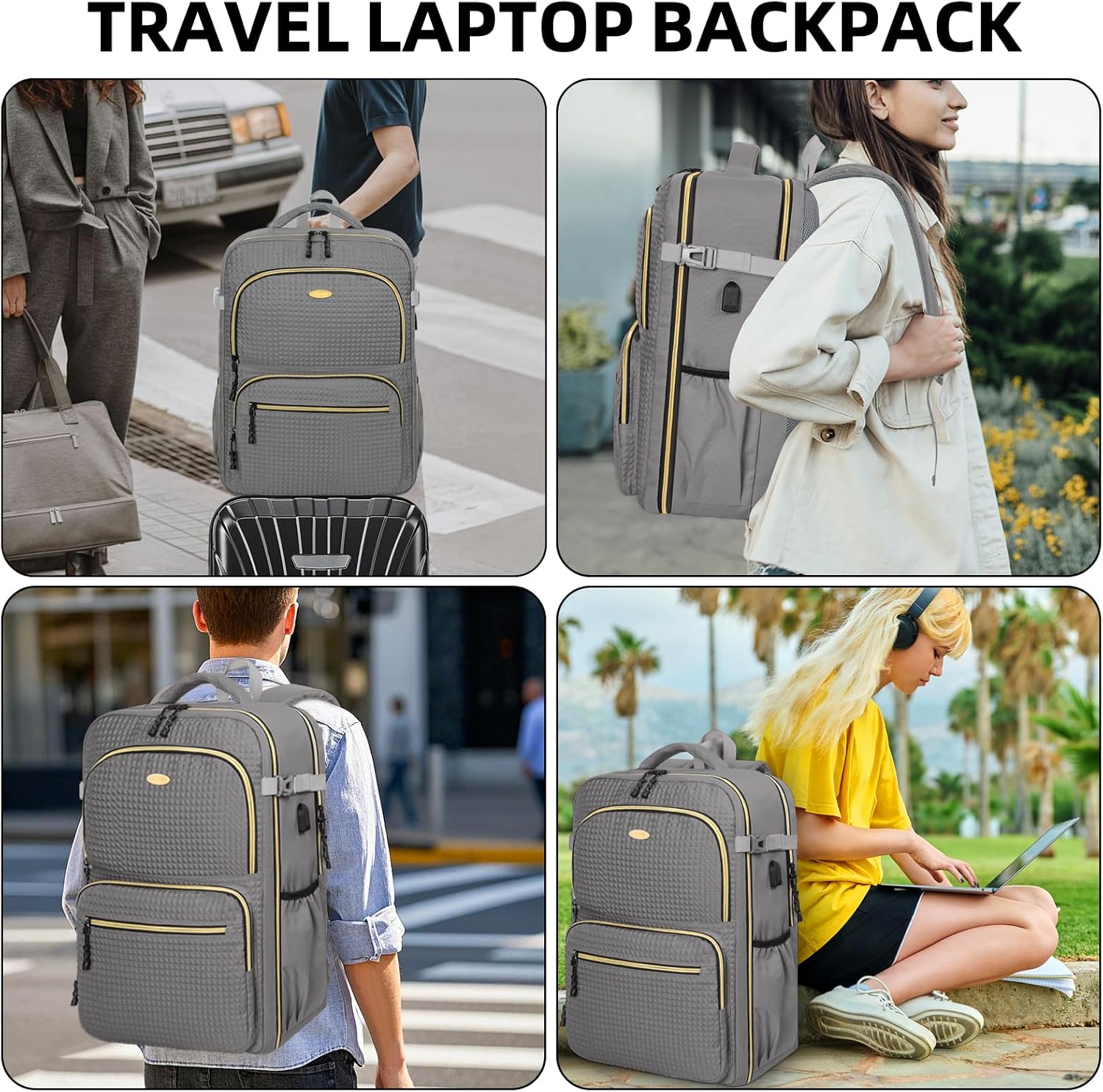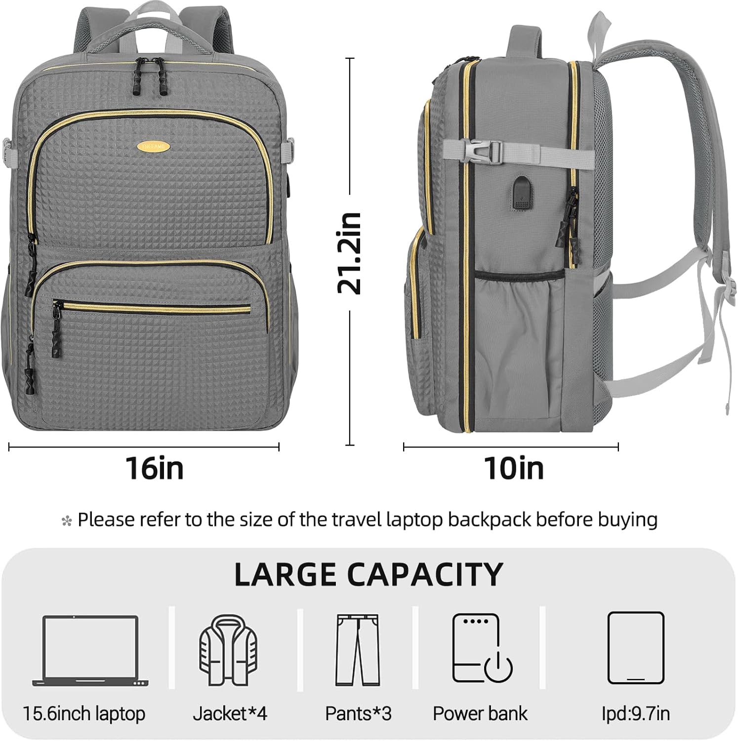 Travel Backpack with USB Charger,15.6 Inch Laptop Backpack for Women and Men,Large Capacity Computer backpack, Carry on Backpack for Business, Travel, Work, College,Grey