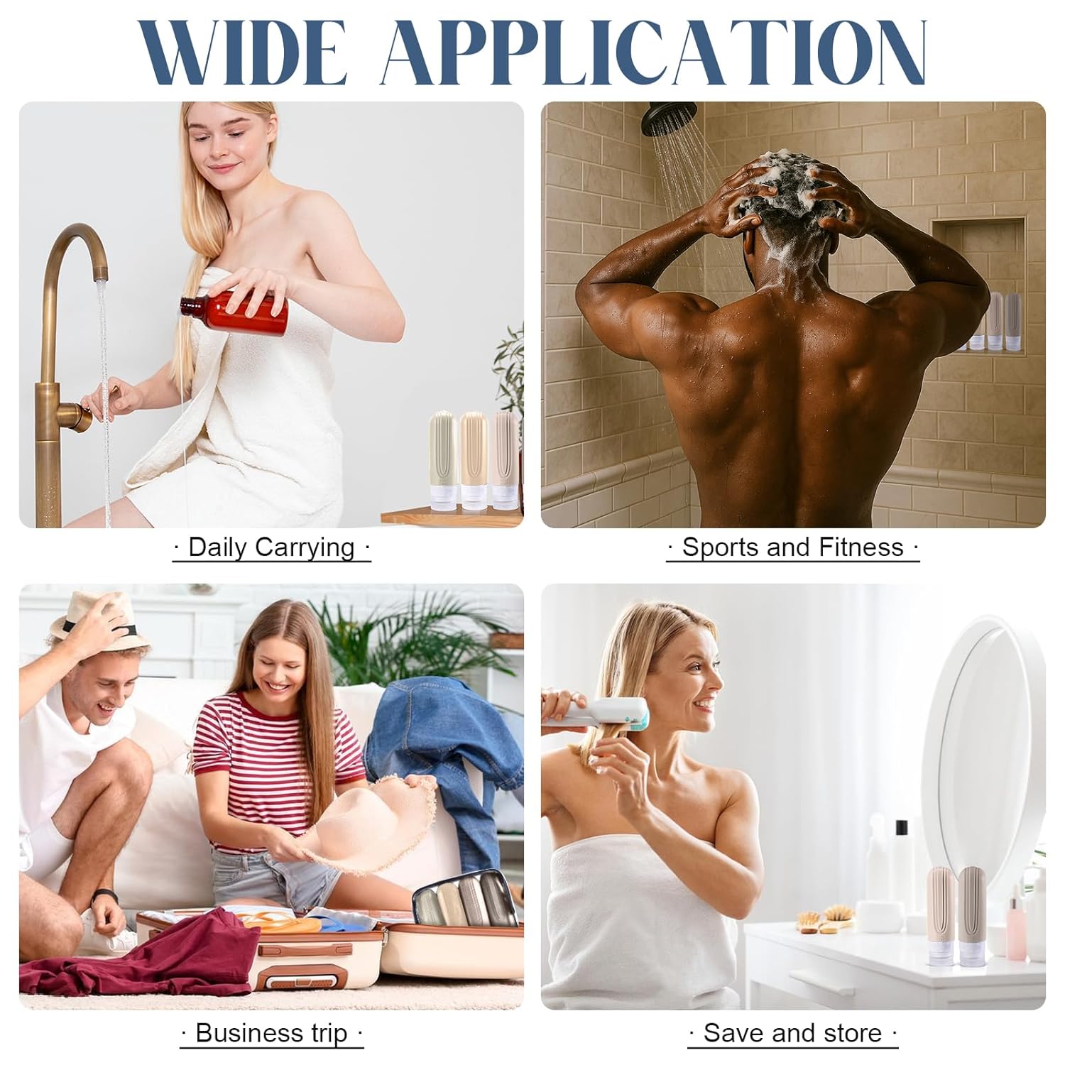 【Wide Application】The Travel Bottles for Toiletries are perfect for traveling, business trips, airplanes, beaches, gym showers, cruise ships, camping, and dormitories. These travel bottles are nice containers for lotions, shampoos, creams, makeup, and other skincare products. A must-have travel accessories for your vacation or life