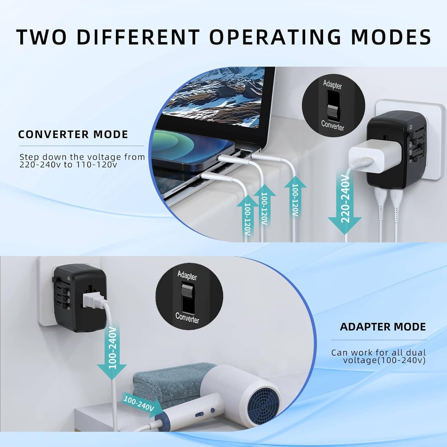 Travel Converter Adapter Voltage Converter That Steps Down 220 Volts to 110 Volts for use in Over 200 Countries,Including The U.S., U.K., Europe, and Australia