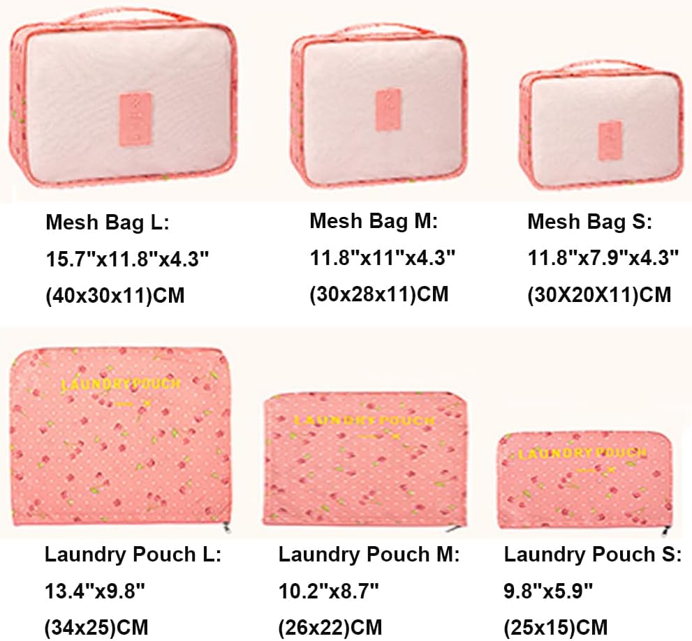 Travel Packing Cubes Lightweight, 6 Set Luggage Organizers for Suitcase,Travel Accessories Bags for Clothes Shoes Cosmetics Electronics Toiletries.(Pink Cherry)