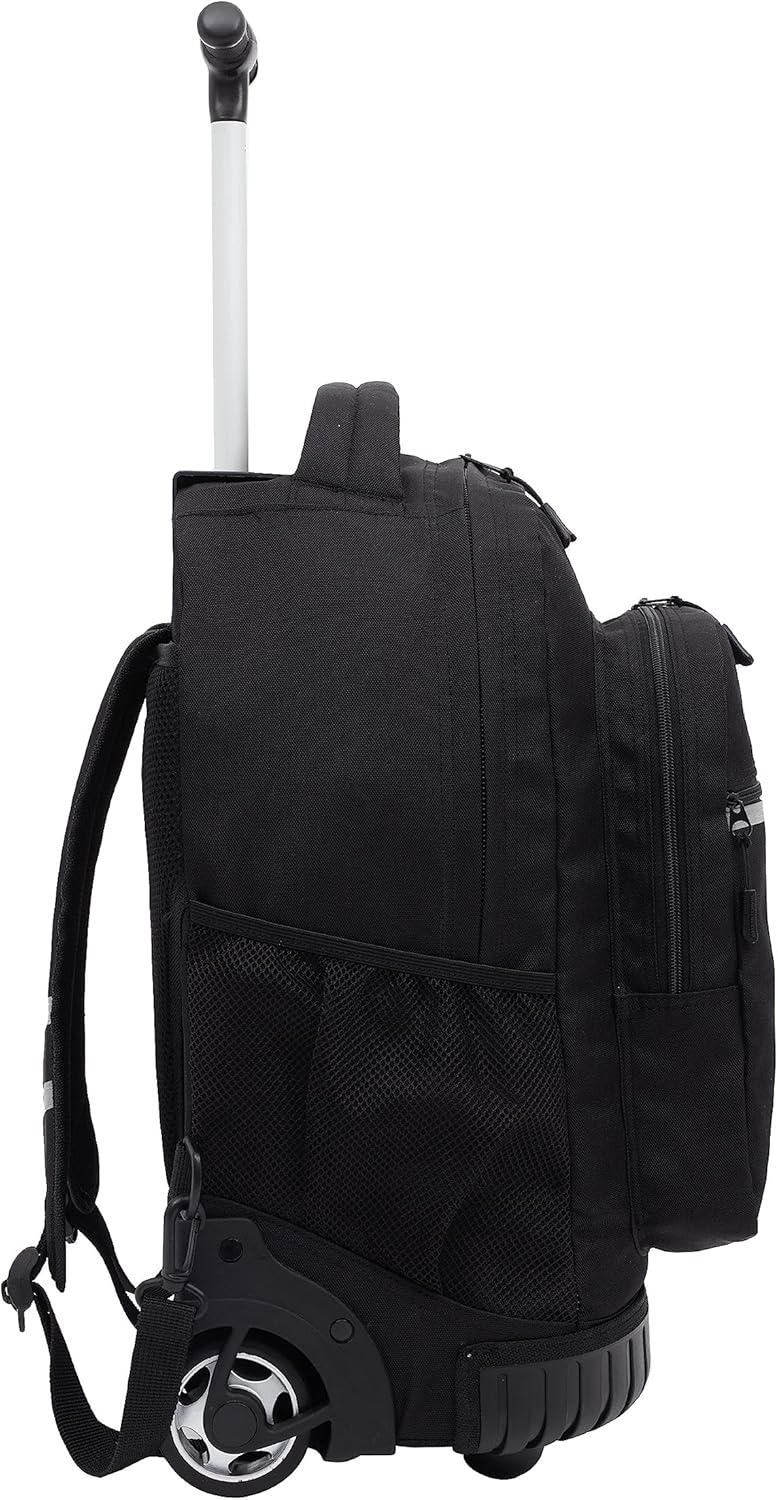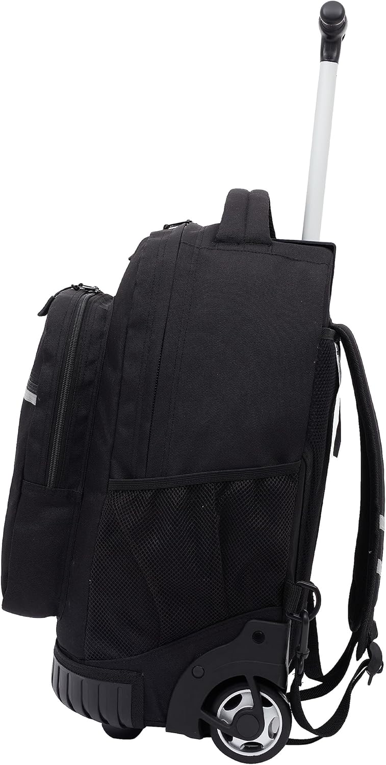 Telescopic locking handles: The backpack features telescopic handles that can be extended and locked into place, providing a convenient and ergonomic way to pull the backpack when it’s rolling