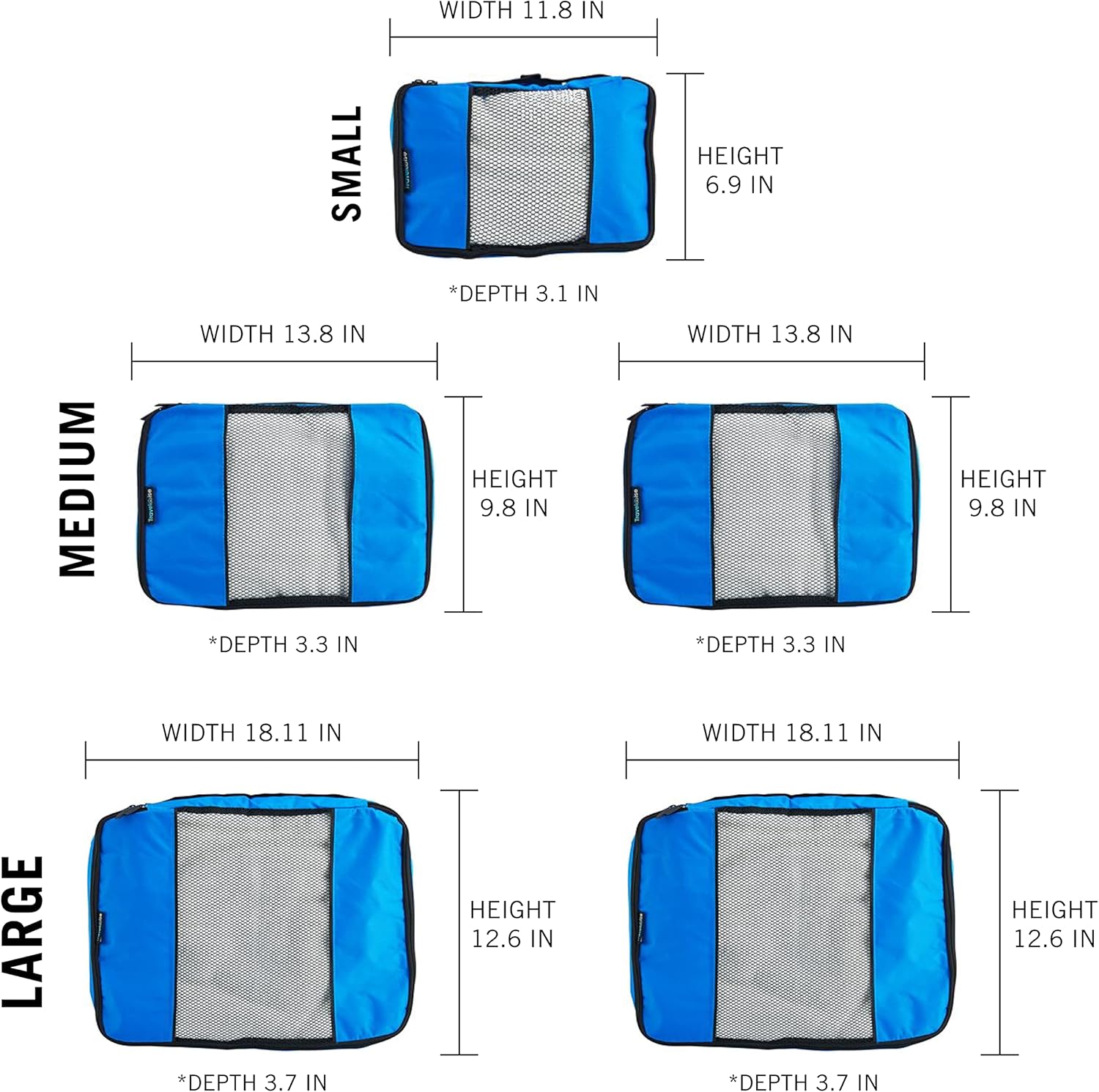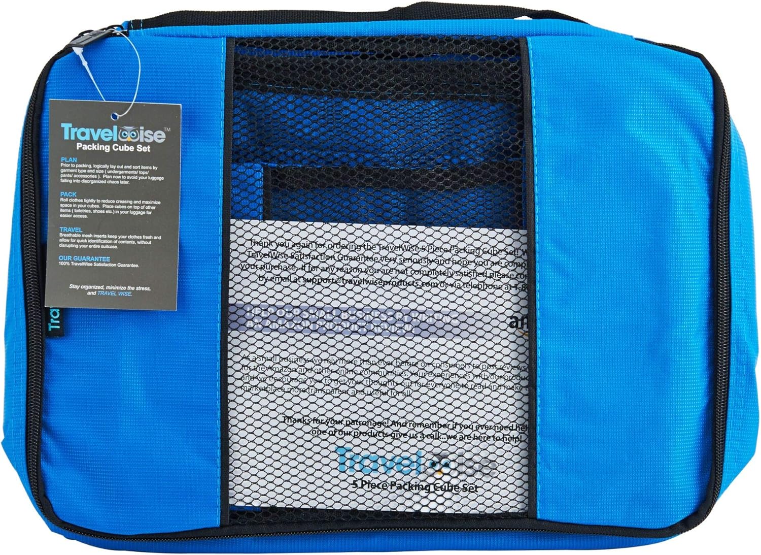 TravelWise Luggage Packing Organization Cubes 5 Pack, Blue, 2 Small, 2 Medium, 1 Large
