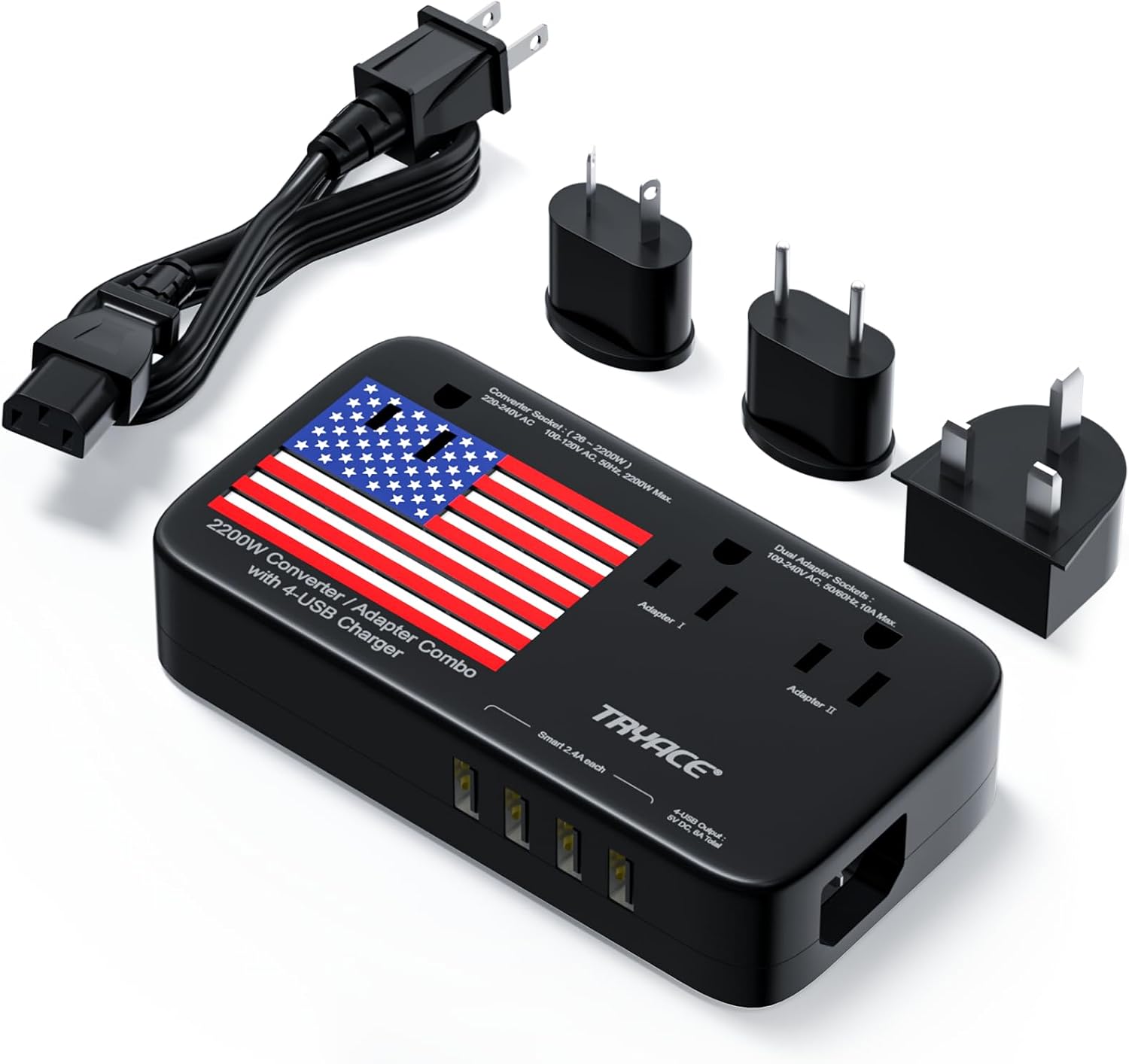 TryAce 2200W Exclusive Voltage Converter, 10A Travel Adapter with 4-Port USB,Power Converter Step Down 220V to 110V for Hair Dryer/Straightener/Curling Iron,US/UK/EU Plug