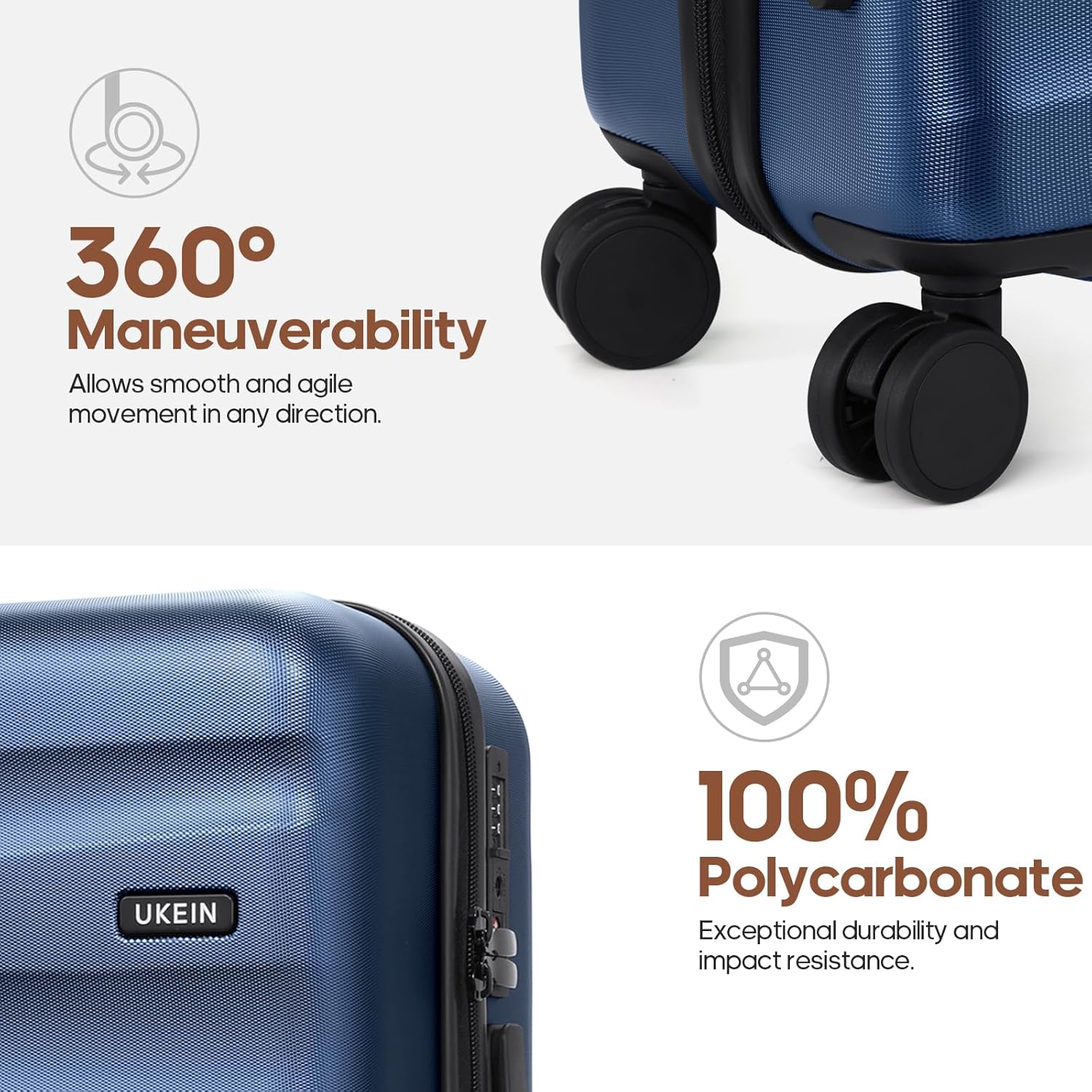 Lightweight but Durable : Made from 100% polycarbonate, this hardshell suitcase is scratch- and impact-resistant. After passing multiple rigorous tests, it’s built to withstand travel challenges, from rough airport handling to crowded terminals. Whether you’re using a luggage set or a carry-on suitcase, it ensures reliable protection for every journey.
