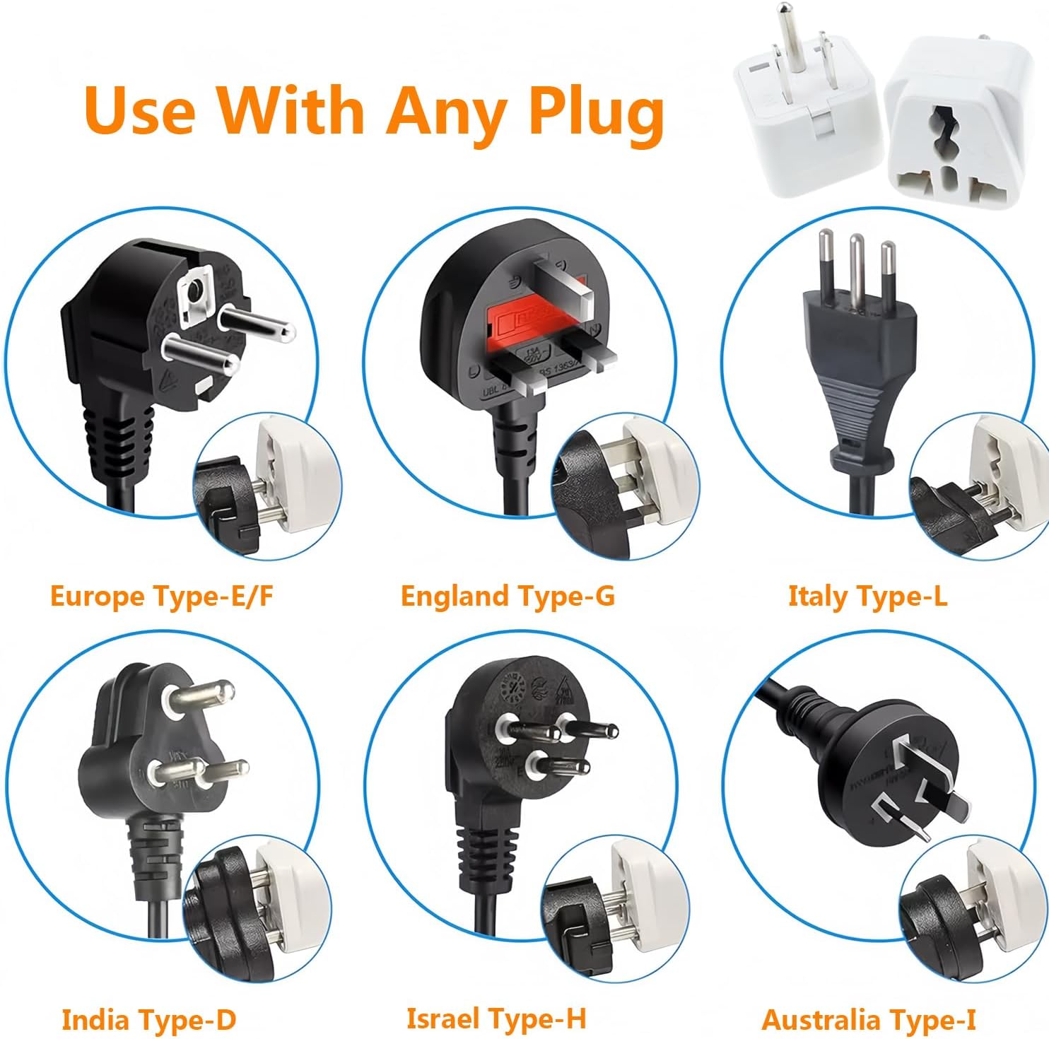 Use area: Accept universal plug adapters from many countries,including UK/EU/AUS/CN/JPN, more than 200 countries,which is the perfect companion for travel. (More country list can be checked in description; doesn’t accept plugs from S. Africa)
