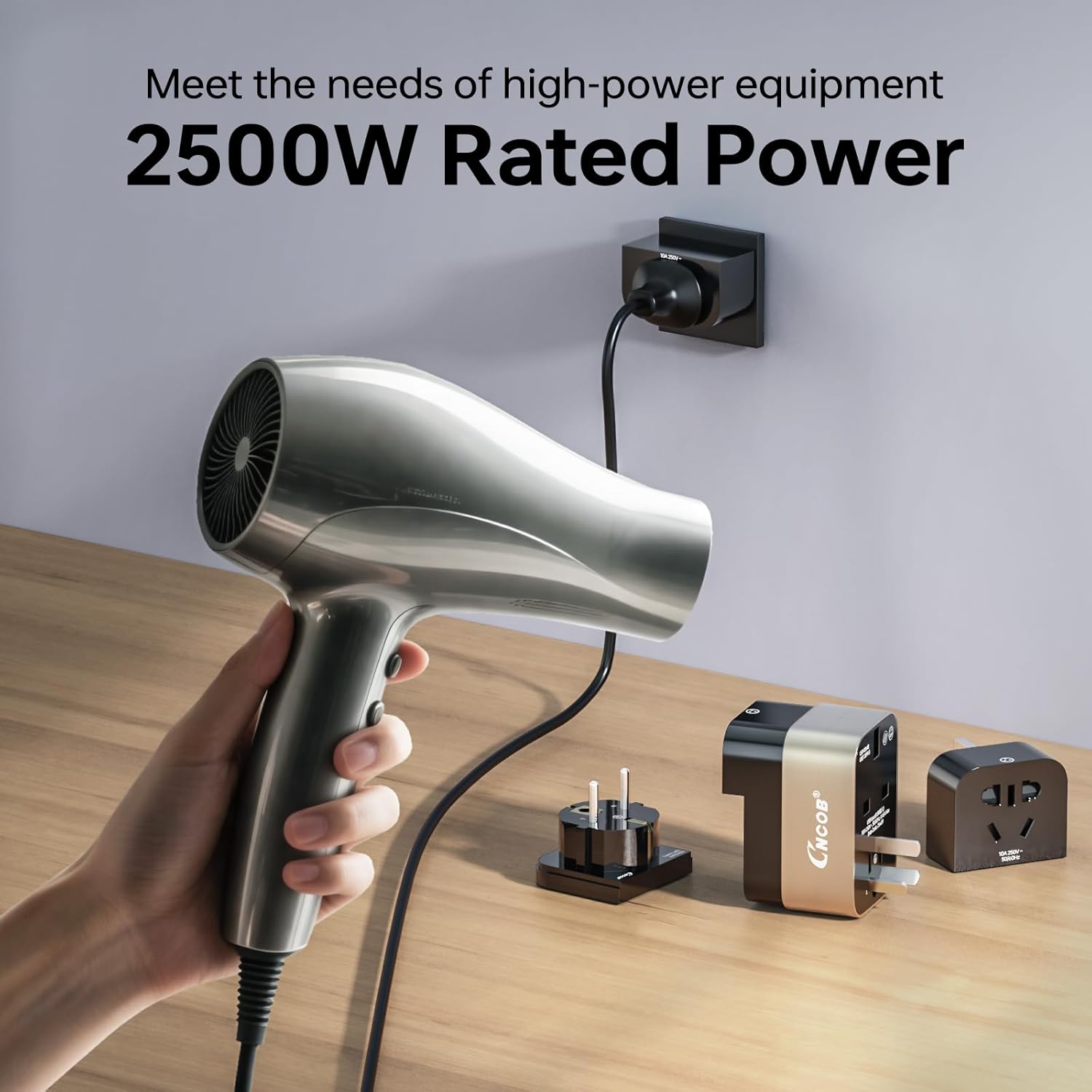 🔌 【Power & Safety Redefined, No Overheating】 Forget wobbly, overheating adapters! Unlike common sliding/push-button designs that loosen and overheat, our adapter features fixed, solid-prong terminals with pure copper wiring. This ensures a stable, secure connection, eliminates heat buildup, and safely delivers the full 2500W (250V/10A) power for demanding devices like hair dryers, steam irons, and laptops without risk of failure.