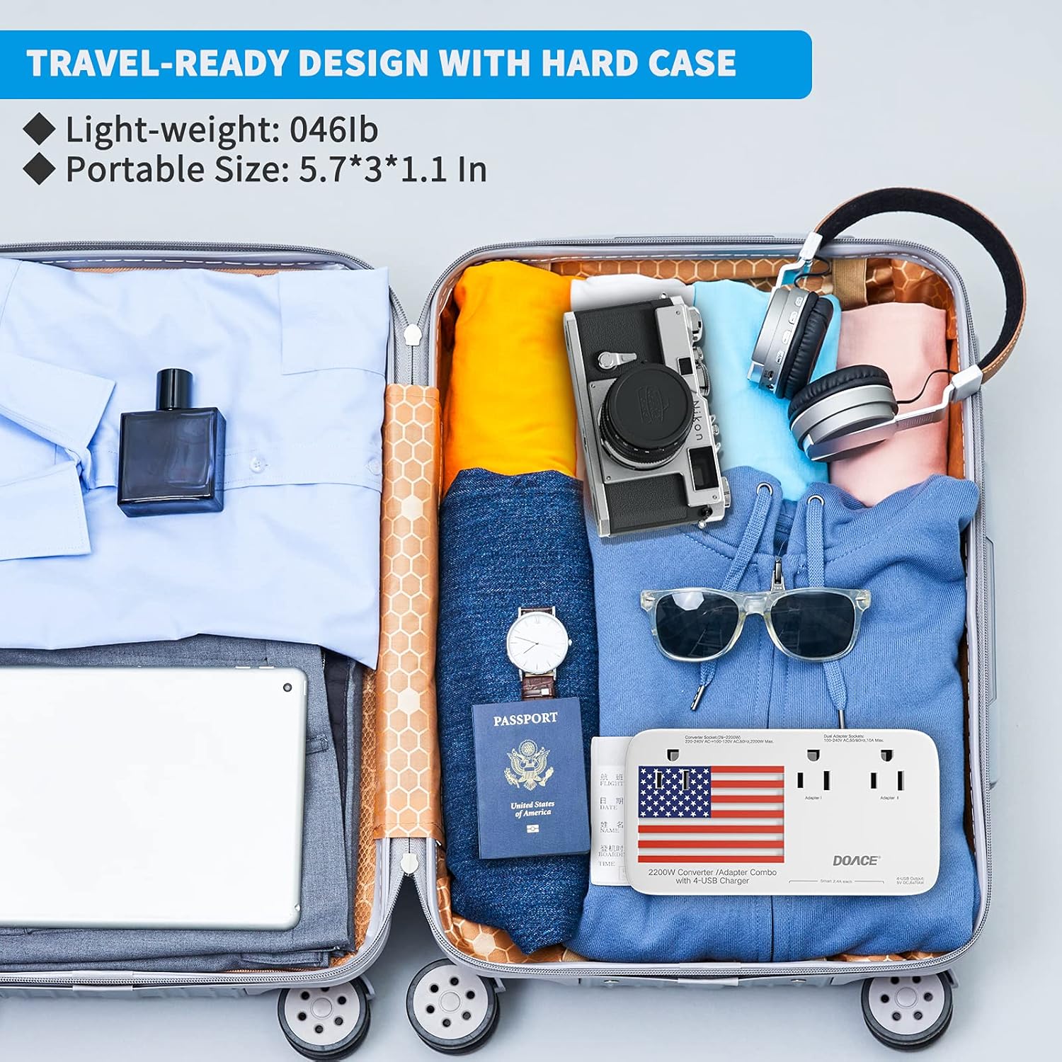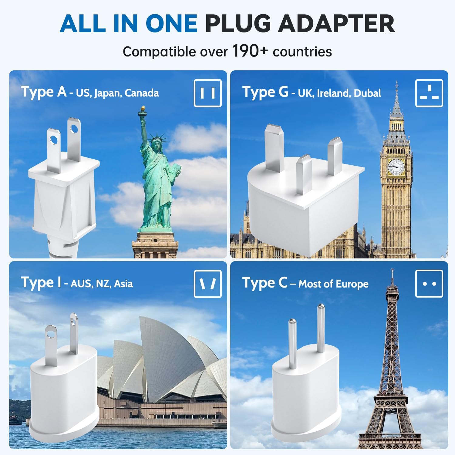 Global Compatibility: DOACE Travel Adapter Converter is built-in with a US Plug and 3 travel plug adapters (UK,AU,EU plug adapters can be used with dual voltage devices under 2000W in all countries), allowing to be used in over 190 countries, such as Ukraine, Mexico, Thailand, Vietnam, Bali, Cambodia, Germany, Japan, China,Korea,India,Italy,Brazil,Europe, Asia, the Middle East, Etc.