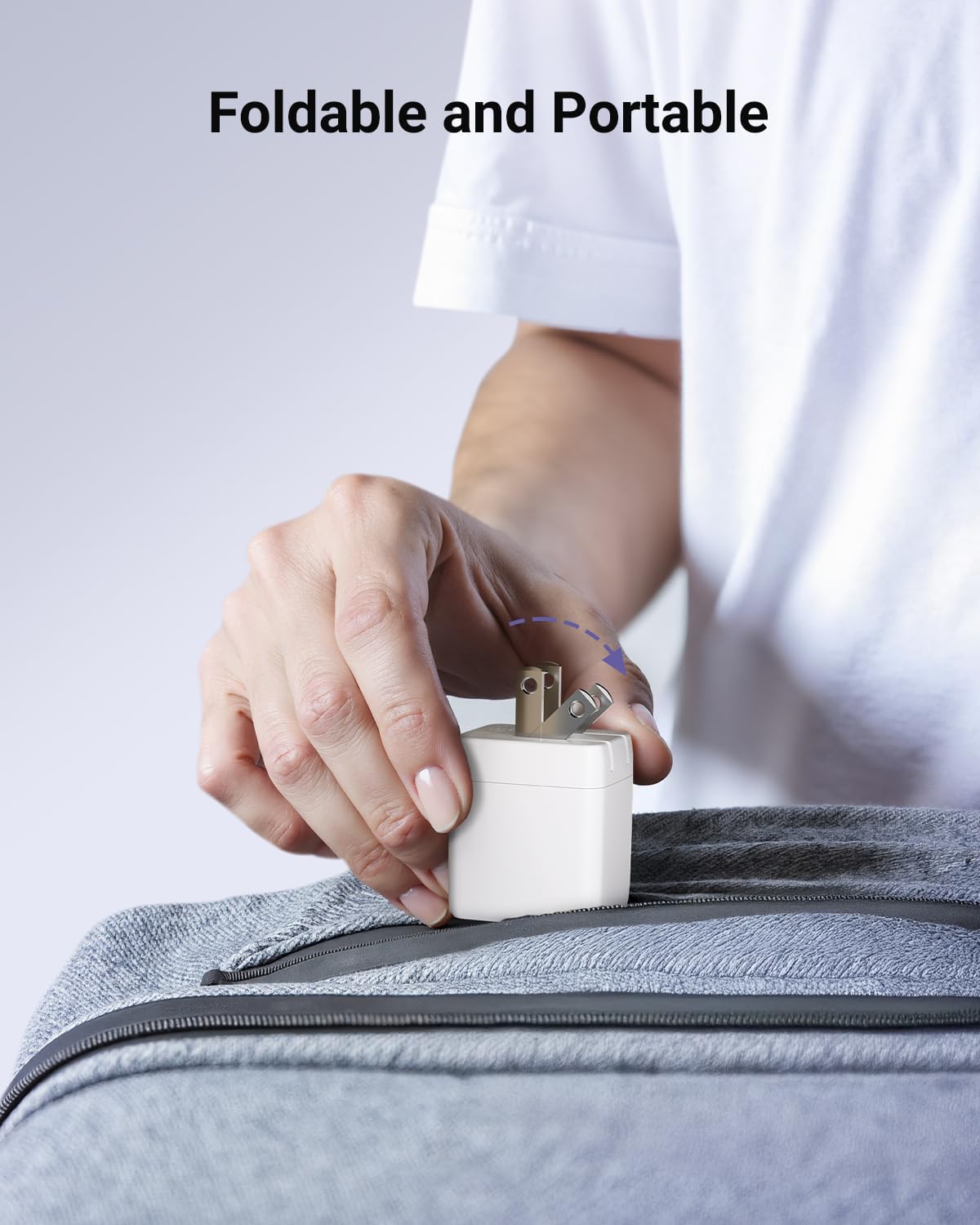 USB C Fast Charging Charger, 30W Dual-Port GaN Nano Charger with Foldable Plug for iPhone 16/15 Series, iPad, Galaxy S24 Ultra and More Series, (White, 1 Pack)