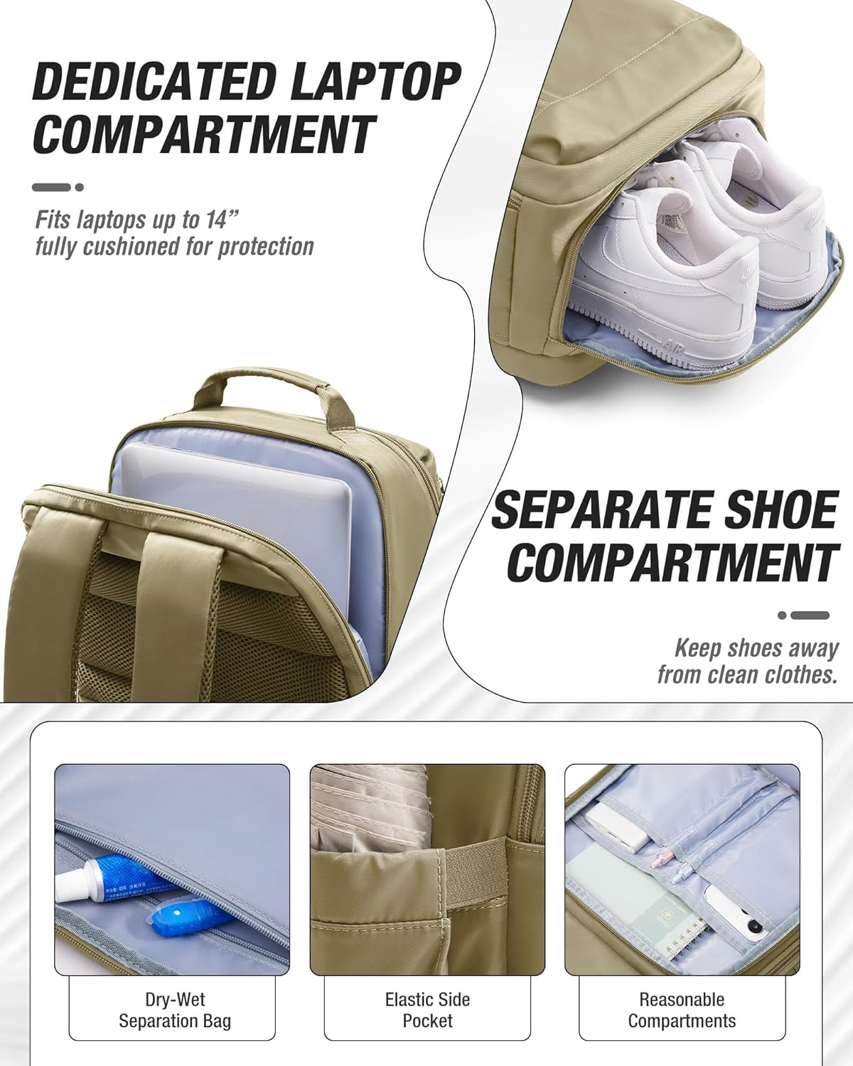 ✅ [User-Friendly Design] Featuring a separate laptop compartment, shoe compartment, and wet-dry separation space, it keeps clothes clean and odor-free, offers better protection for your laptop, and ensures easy organization and access.