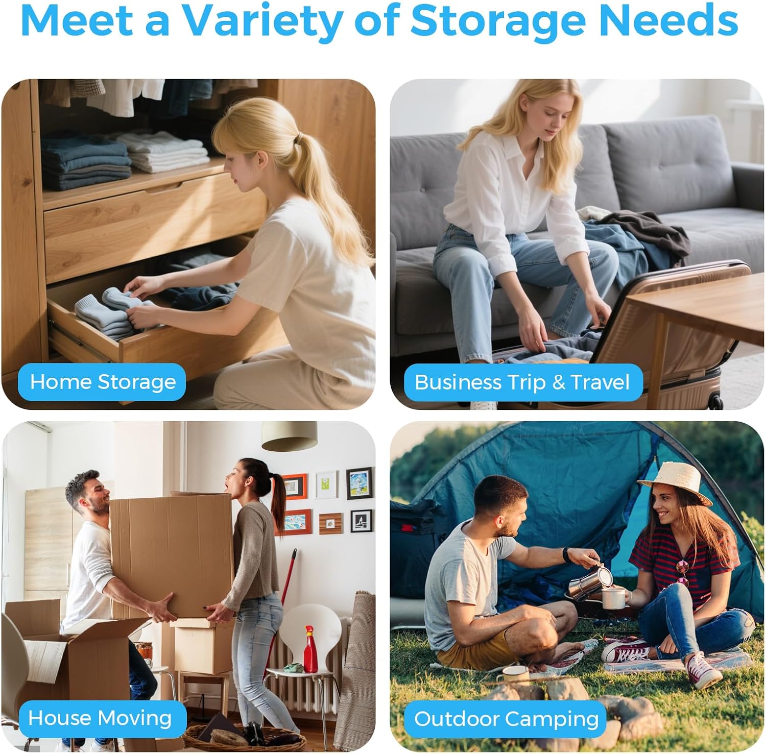 [Durable Vacuum Storage Bags & Long-Lasting Seal] Featuring a screw seal valve + double zipper, these vacuum bags for travel lock air out and save 80% space. Reusable and leak-proof, they’re ideal for vacuum seal bags for clothing storage during trips or at home.