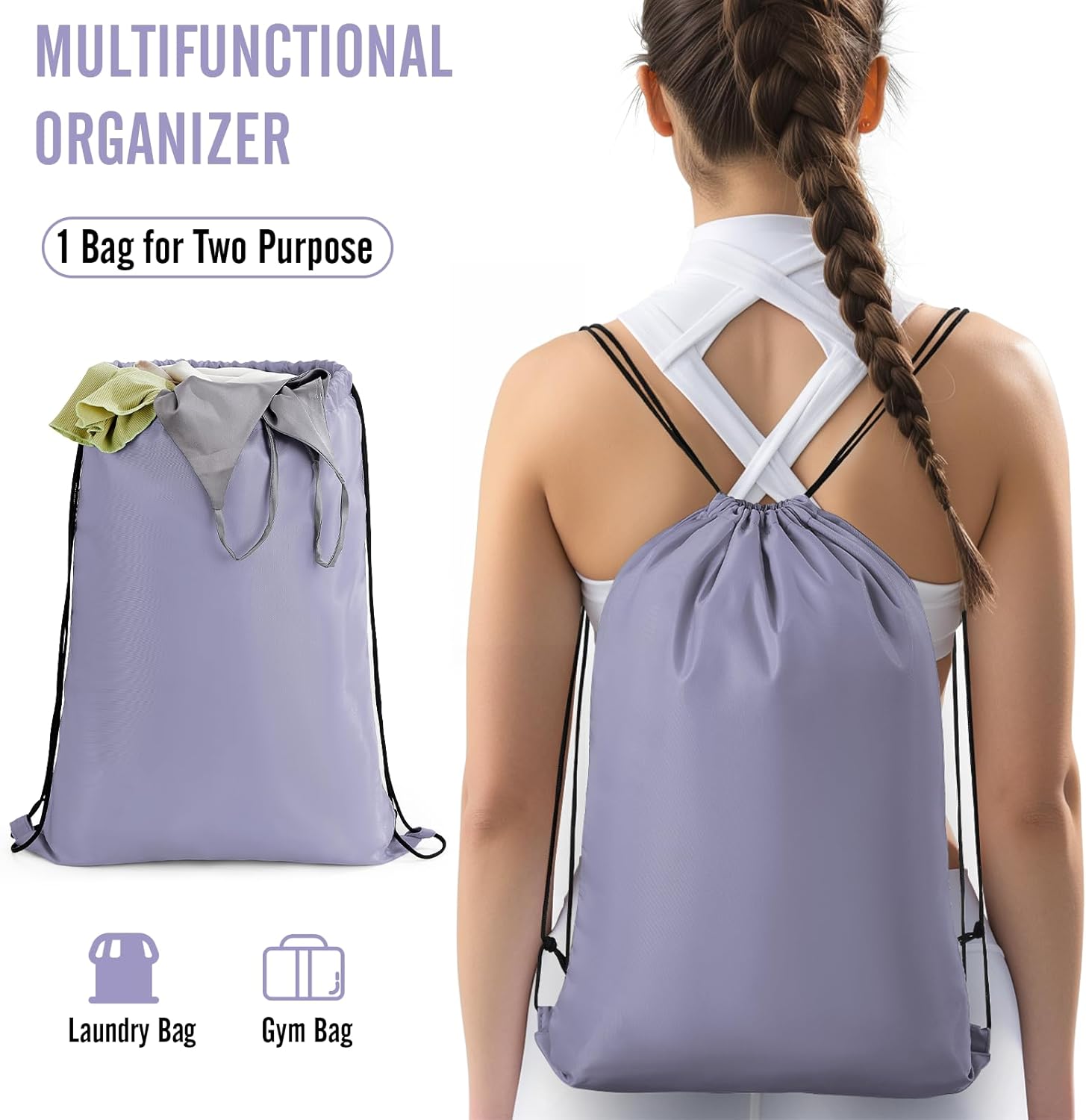 Multi-purpose Travel Essential: Includes a hanging toiletry bag with 5 compartments for organizing toiletries and cosmetics, featuring a convenient hanging design. The versatile laundry bag holds up to 9 garments and transforms into a backpack, perfect for all your travels.