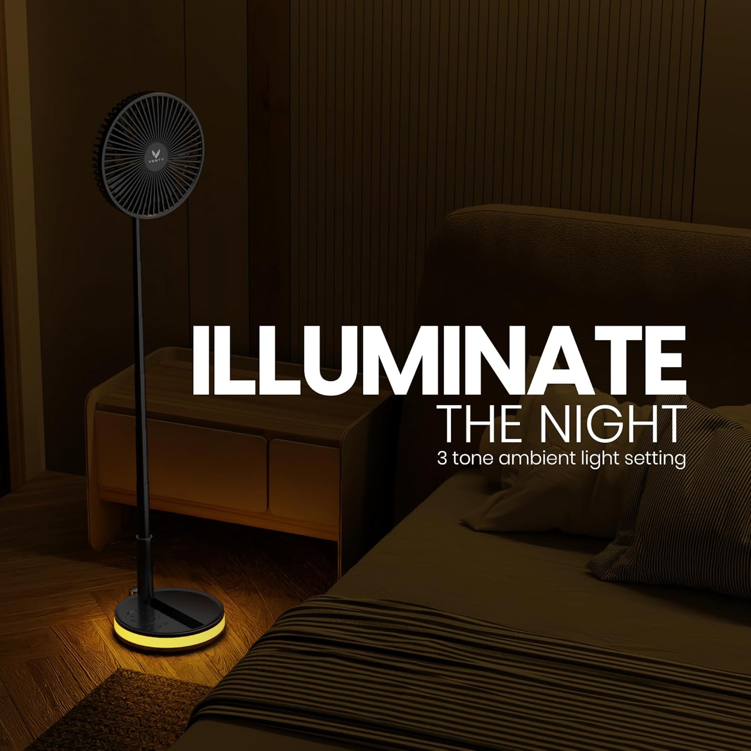 LED LIGHTS & REMOTE CONTROL – Give your room a rich and beautiful ambiance with the warm 3-level white lights on your Venty fan. Use the detachable wireless remote control to adjust the fan speed, oscillation and turn your lights on/off. Create your very own warm and welcoming space!
