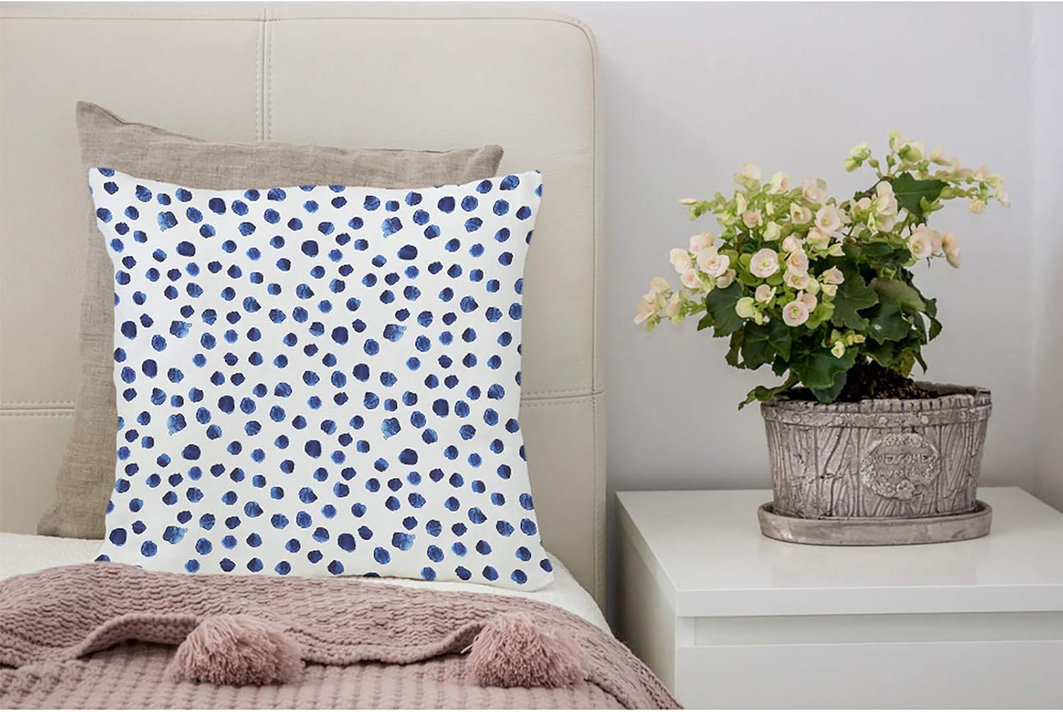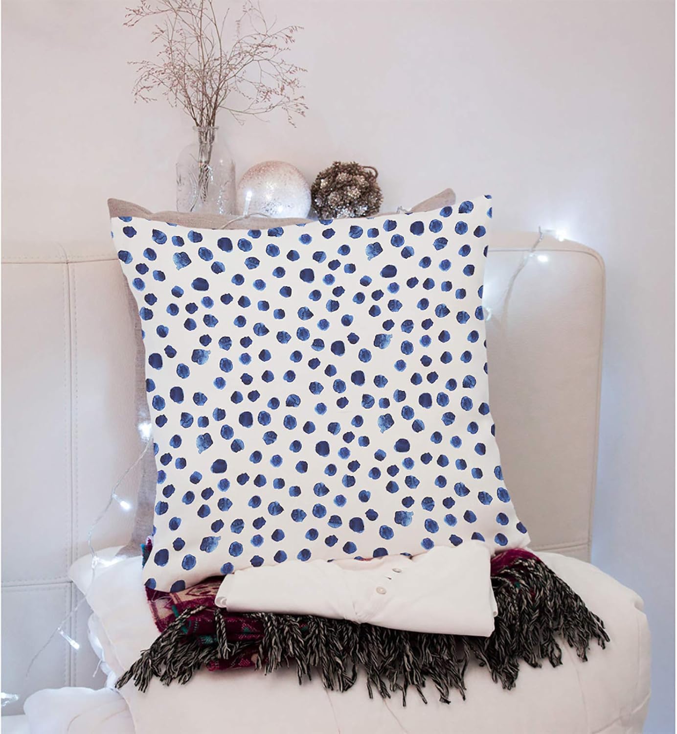 VERSUSWOLF Throw Pillow Covers Navy Paint Hand Drawn Blue Watercolor Polka Dot Watercolour Cotton Linen Decorative Square Pillowcases Cushion Cover 18 X 18 Inch