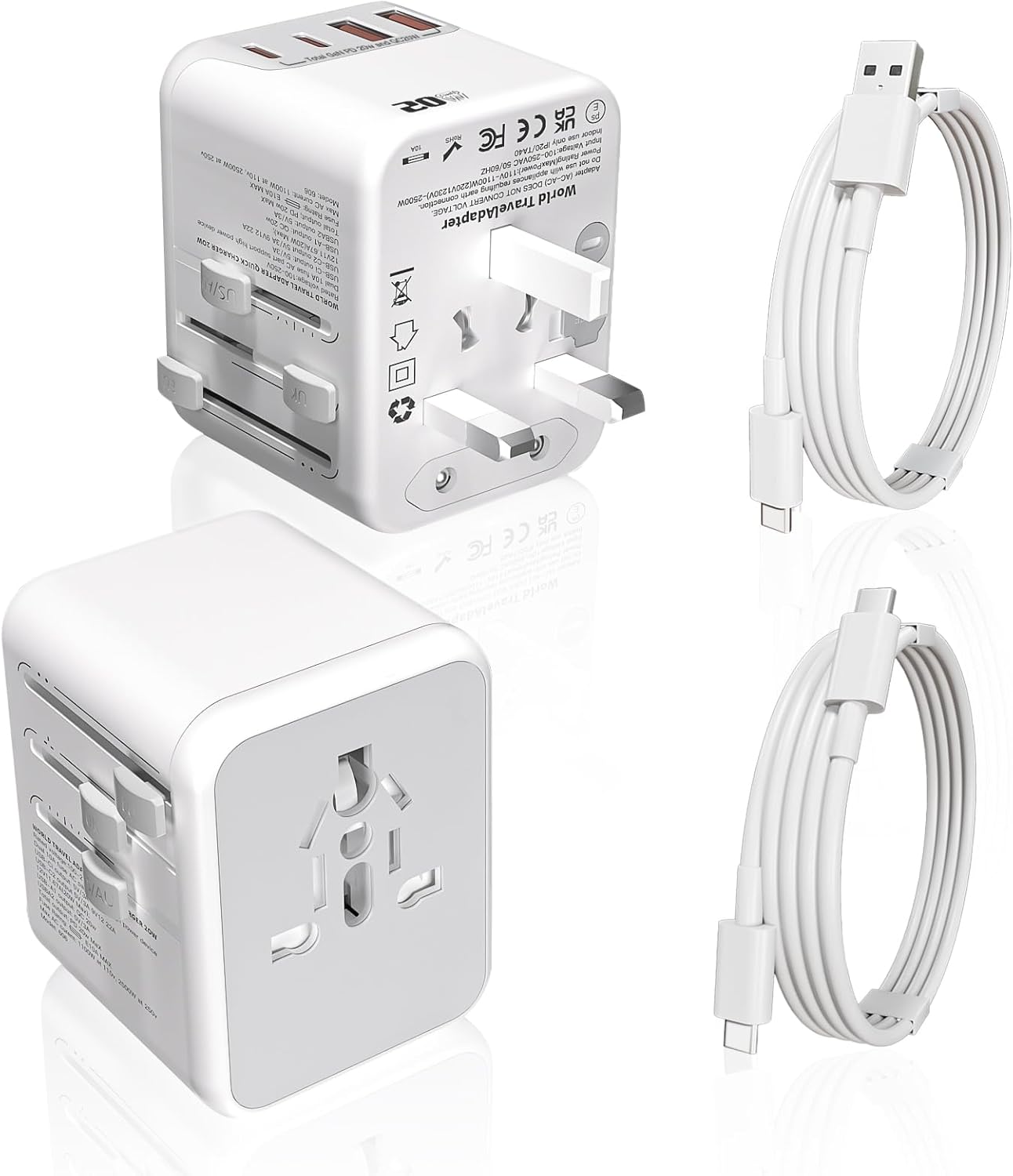 7 in 1 International Travel Adapter: Upgraded universal adapter turns Type A, C, G, D, I, M socket into 4 standard USA sockets(2500W max at 250V) and 3 USB ports(17W max), USB A port charging up to 2.4A(12W), dual USB C port charging up to 3.4A(17W), owing you charge 7 devices at a higher rate simultaneously, no need to carry extra adapter and power strip for your traveling. Ideal for Cell Phone, iPad, Kindle, Laptop, GoPro, Camera, Power Bank, etc