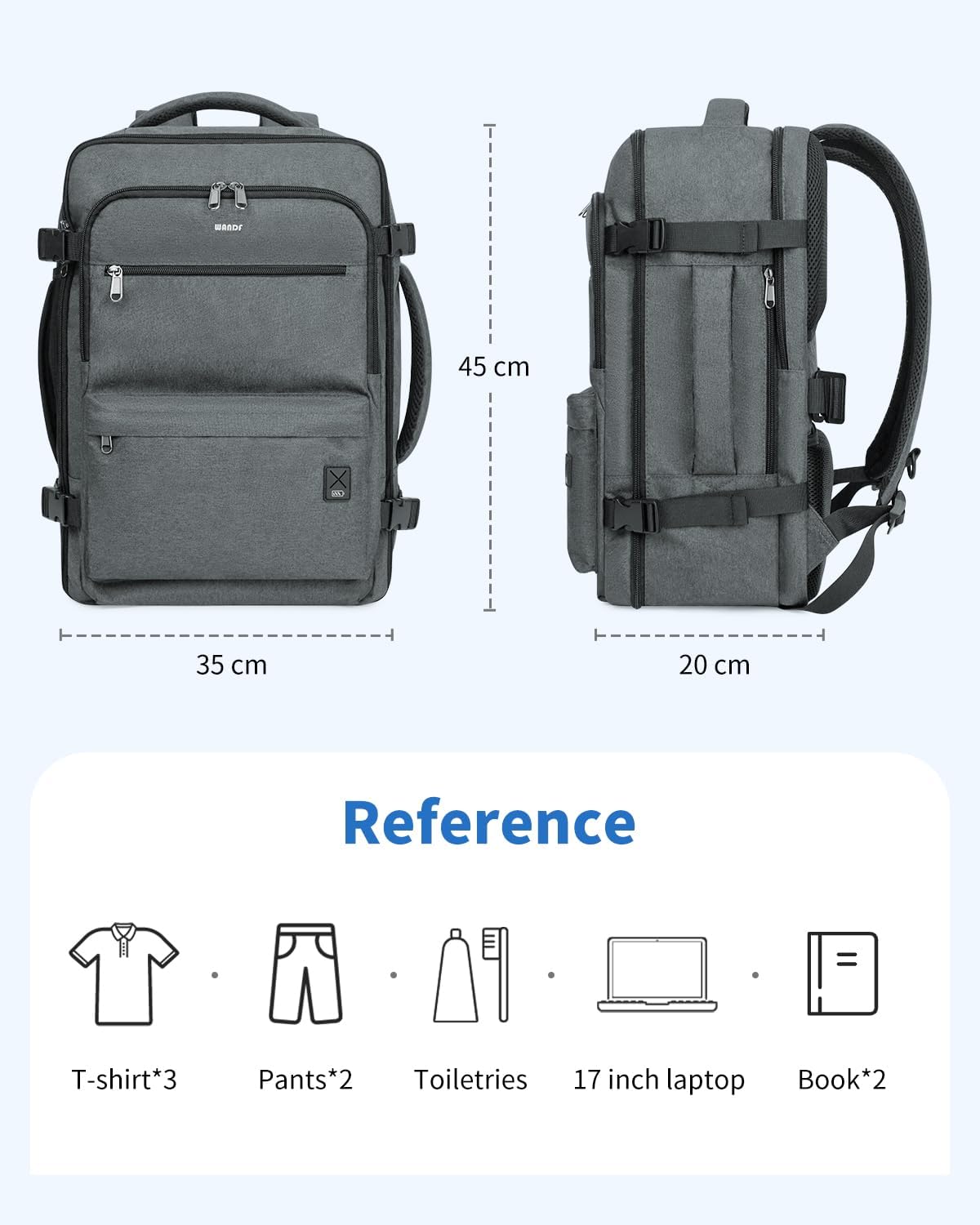 Be the first to review “WANDF Travel Backpack For Spirit Airlines Personal Item Bag 18x14x8 with Wet Pocket, 17 Inch Laptop Backpack for Men Women(Grey)”