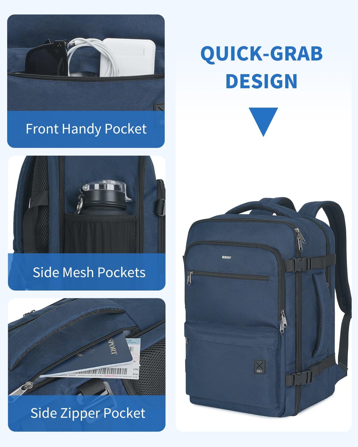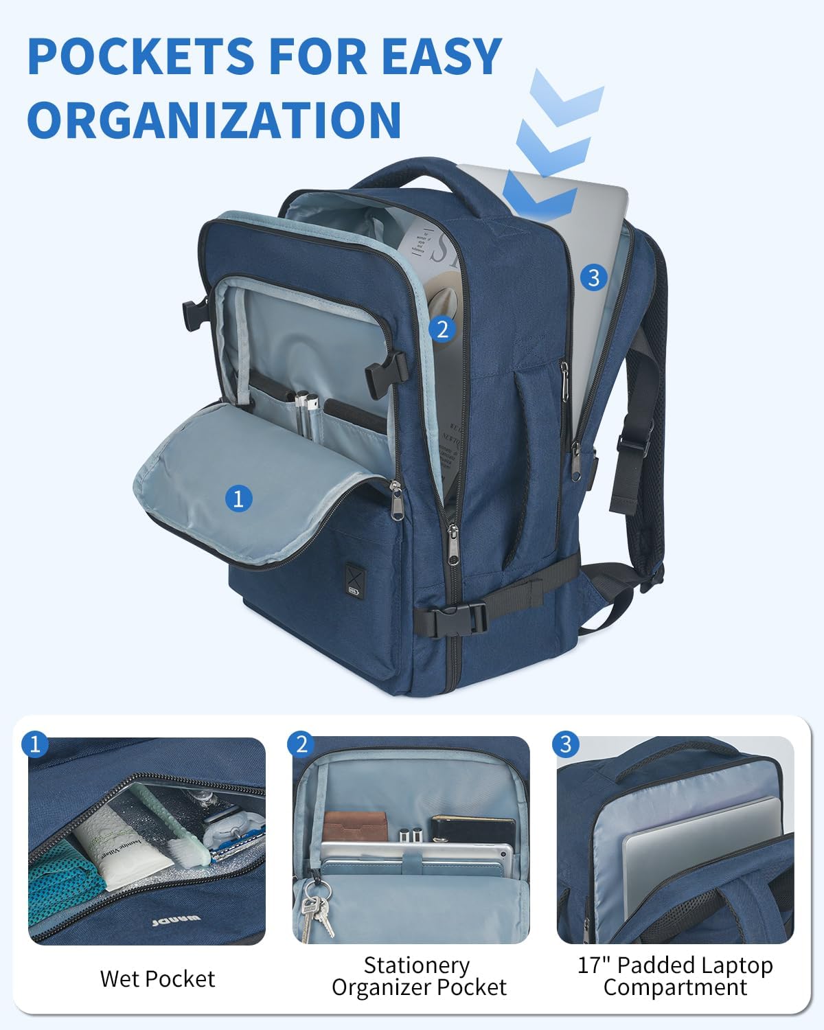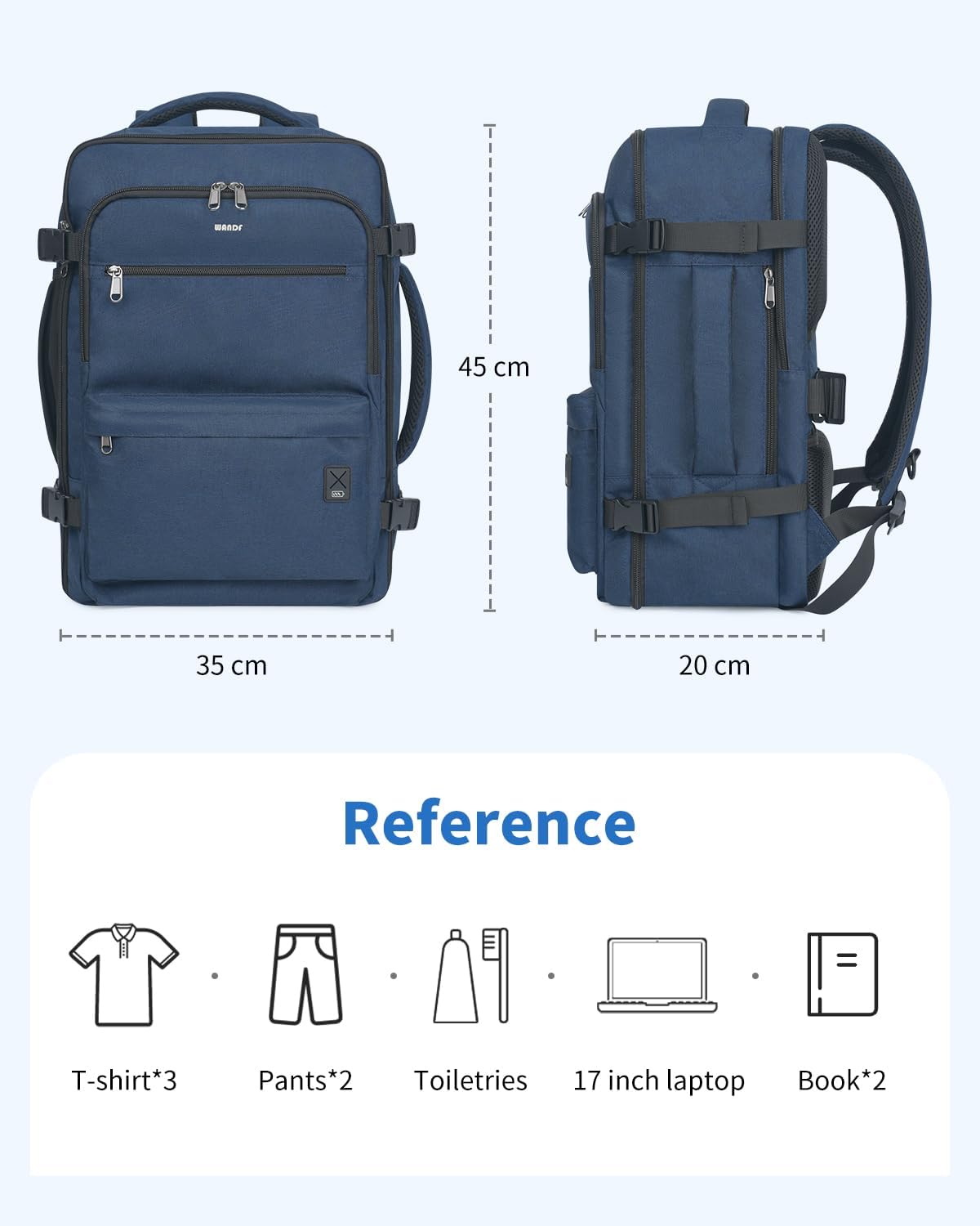 WANDF Travel Backpack For Spirit Airlines Personal Item Bag 18x14x8 with Wet Pocket, 17 Inch Laptop Backpack for Men Women(Navy Blue)