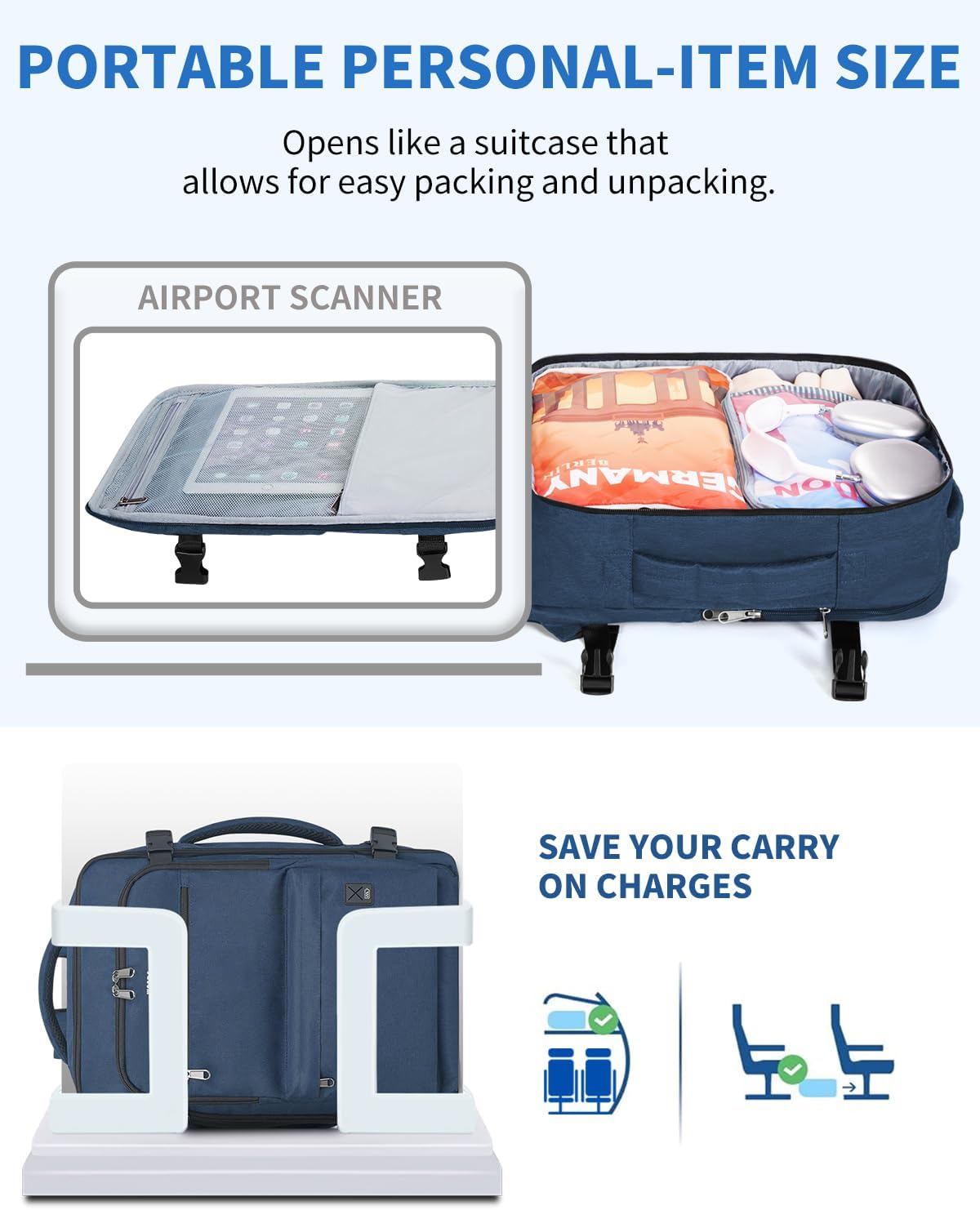【Built to Go Further】Equipped with a USB charging port (power bank not included), durable lockable zippers, and reinforced stitching that withstands heavy travel use. Thoughtfully designed so you can travel lighter, safer, and happier—trip after trip.