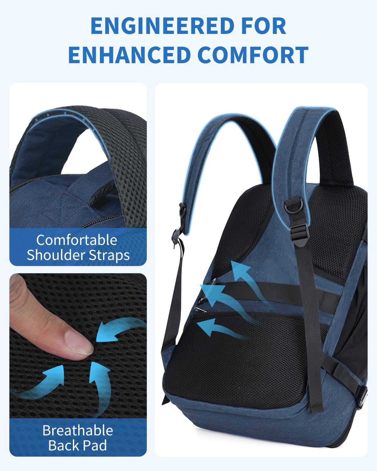 【Comfort for Every Journey】Padded shoulder straps and an air-mesh back panel provide breathable comfort even on long walking days. Dual grab handles and a luggage strap make transitions through airports and stations smooth and effortless.