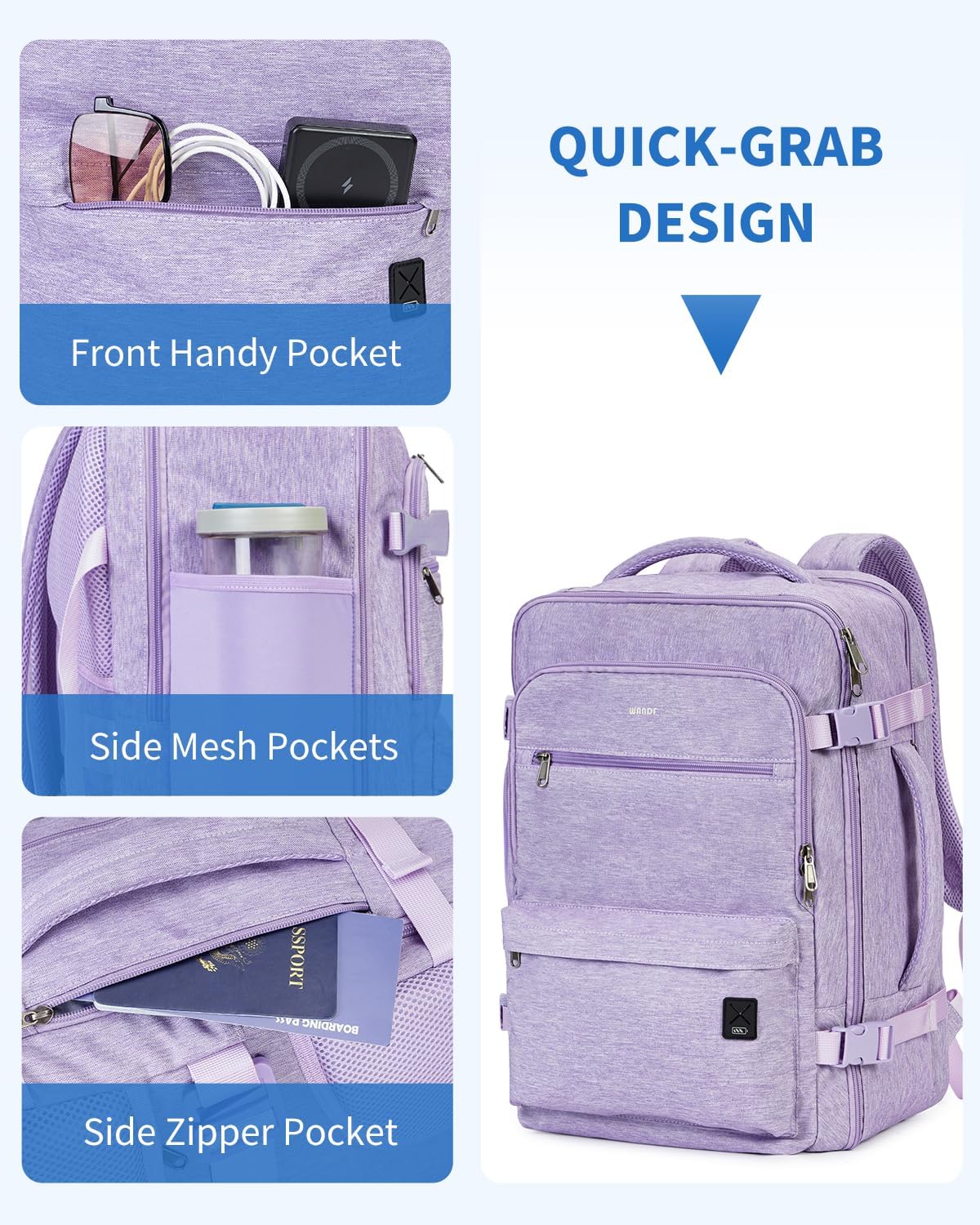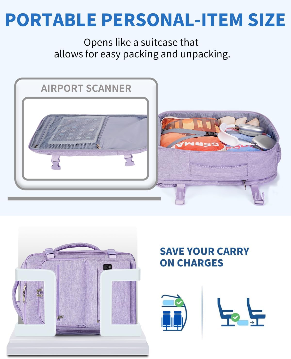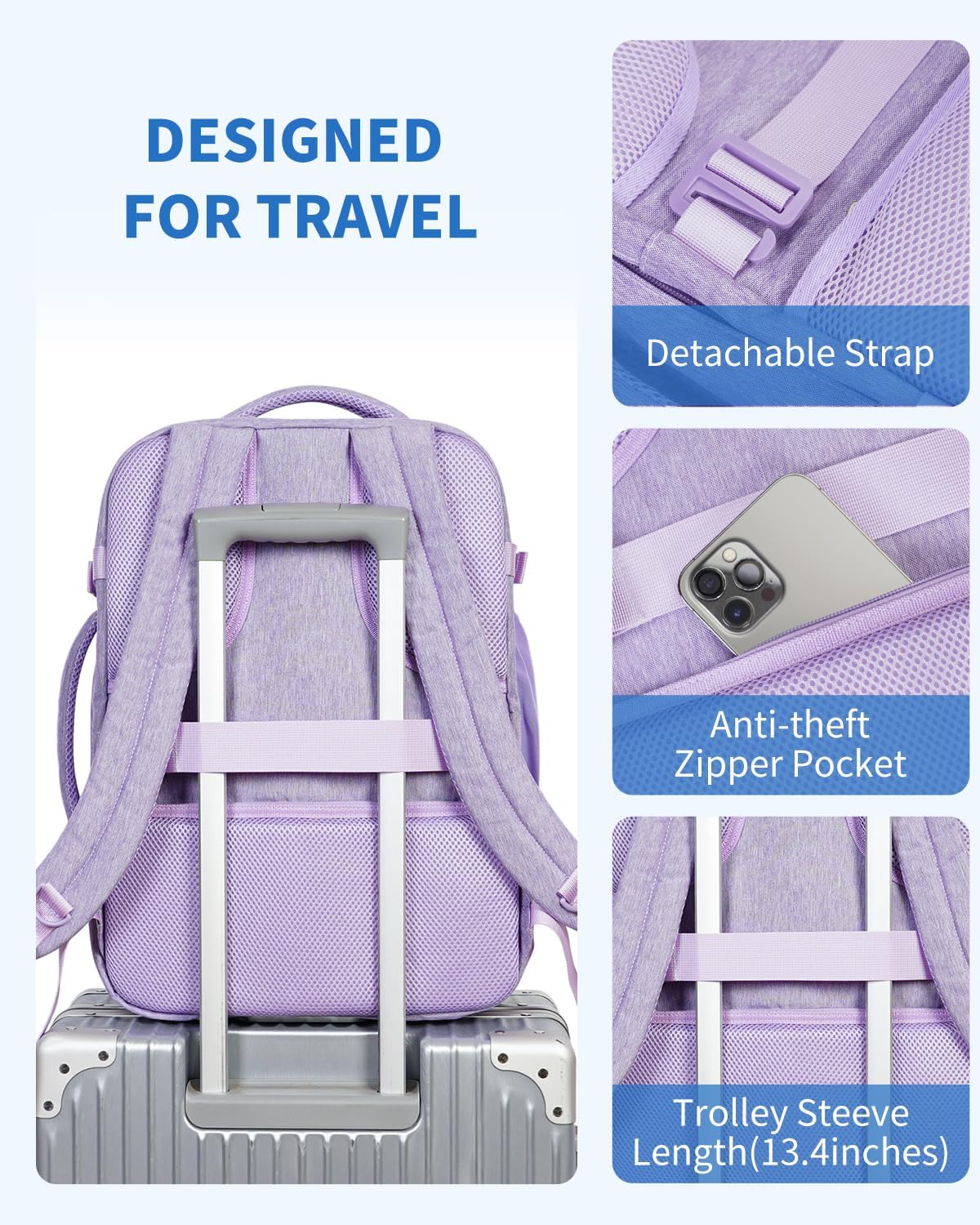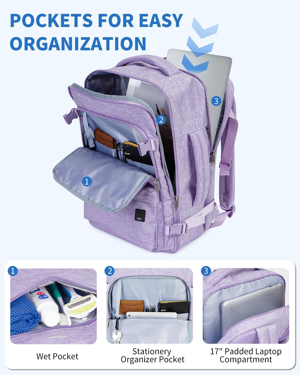 WANDF Travel Backpack For Spirit Airlines Personal Item Bag 18x14x8 with Wet Pocket, 17 Inch Laptop Backpack for Men Women(Purple)