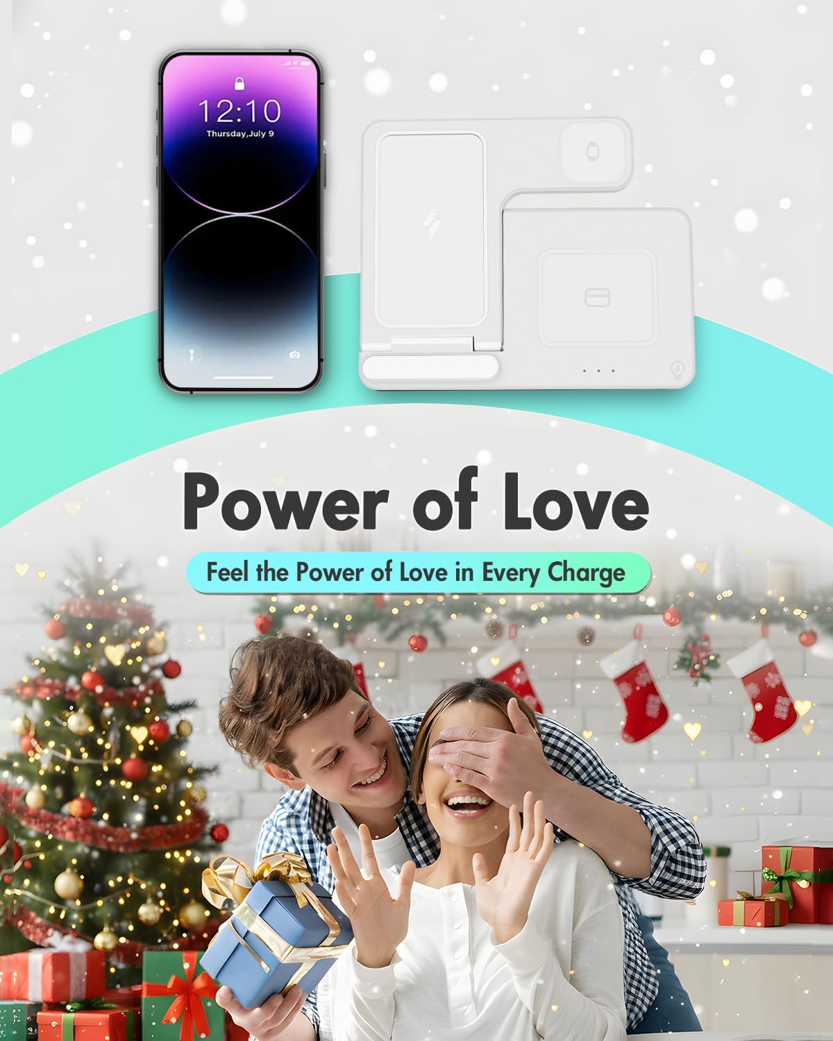 3 in 1 Wireless Charger Station: This 3-in-1 wireless charger is designed to work seamlessly with a variety of devices, including iPhone 17 16e 16 15 14 13 12 11 8 Pro Max Mini Plus X XR XS Max SE Plus Series, Apple Watch Series 10 9 8 7 6 5 4 3 2 SE and Ultra, AirPods 2 3 Pro 2 Pro 3 Airpods 4 (ANC), (Note: for Airpods 2 3 4, needs work with a MagSafe charging case). A perfect Christmas present for couple (to husband or wife), son, daughter, or any loved ones.