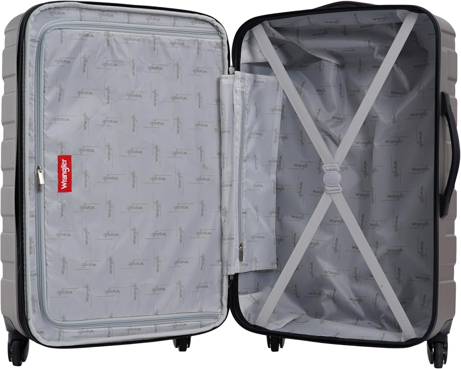 Wrangler 4 Piece Set Includes: 25″ Hardside Expandable Check-In Suitcase, 20″ Hardside Expandable Carry-On Luggage, 15.5″ Packing Cube, 12″ Packing Cube