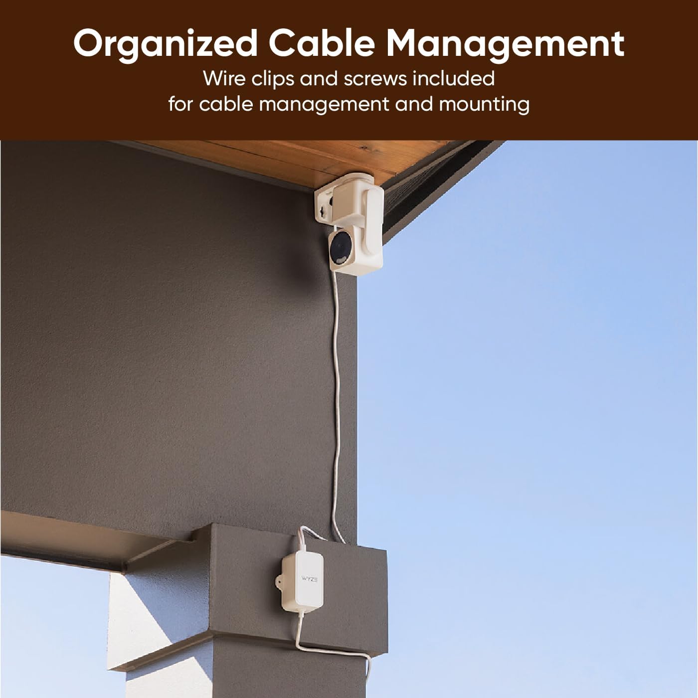 Connect wired Wyze outdoor rated cameras with the Wyze Universal Outdoor Power Adapter, anywhere, rain, snow, or shine.