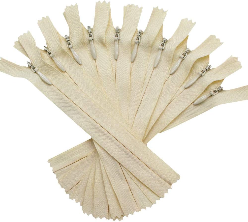 YaHoGa 10pcs 24 Inches Invisible Zippers Conceal Zippers for Sewing, Dress, Garments, Clothes, Pillow, Tailor, Craft (Beige, 24″)