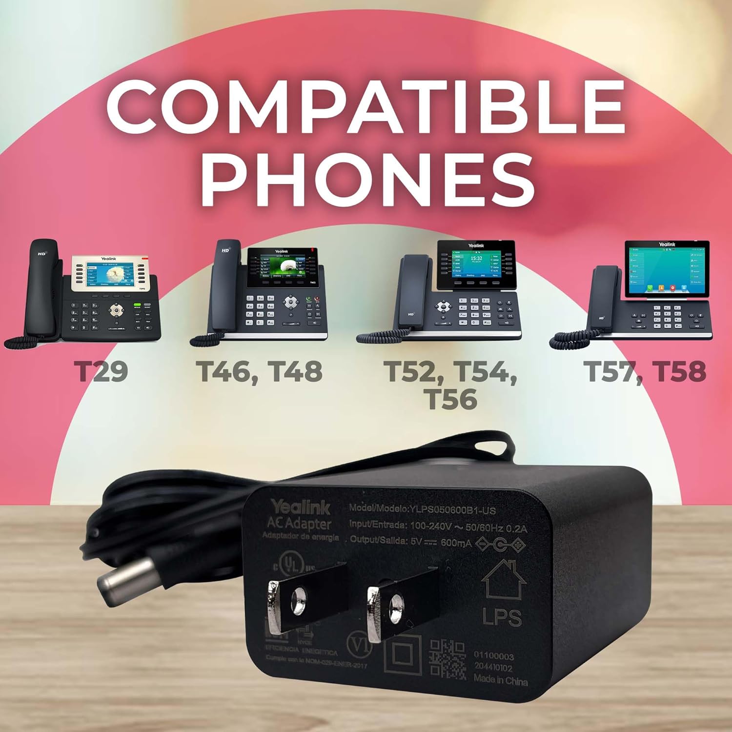 Reliable Power Supply: Designed for specific Yealink IP phones, delivering a smooth 5V – 2A output with an input range of 100-240V ~ 50/60Hz, Designed for use with a variety of Yealink models including the CP860 Conference Phone, SIP-T46G, T48G, T29G, T32G, T46S, T48S, T58A, T58-CAM, T54W, T57W MP54-TEAMS, MP56-TEAMS, T5xx Series (T53, T53W, T54W, T56A, T57W, T58A), T73U T73W T74W T74U T77U, T85W, T87W, MP52, MP54 and MP56; Not intended for usage with MP58/T88V/T88W telephones