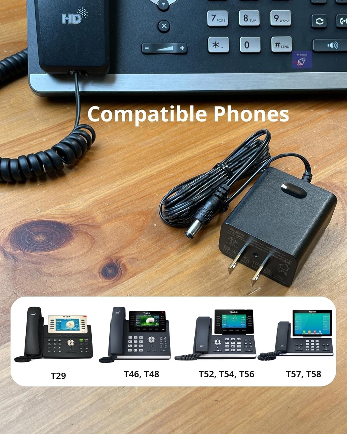 Yealink Phone Power Adapter PS5V2000US – for Yealink Telephones T46, T48S, T58A, T58-CAM, T54W, T57W, Teams Phones – MP52, MP54, MP56, T85W, T87W, Global Teck Microfiber Cloth