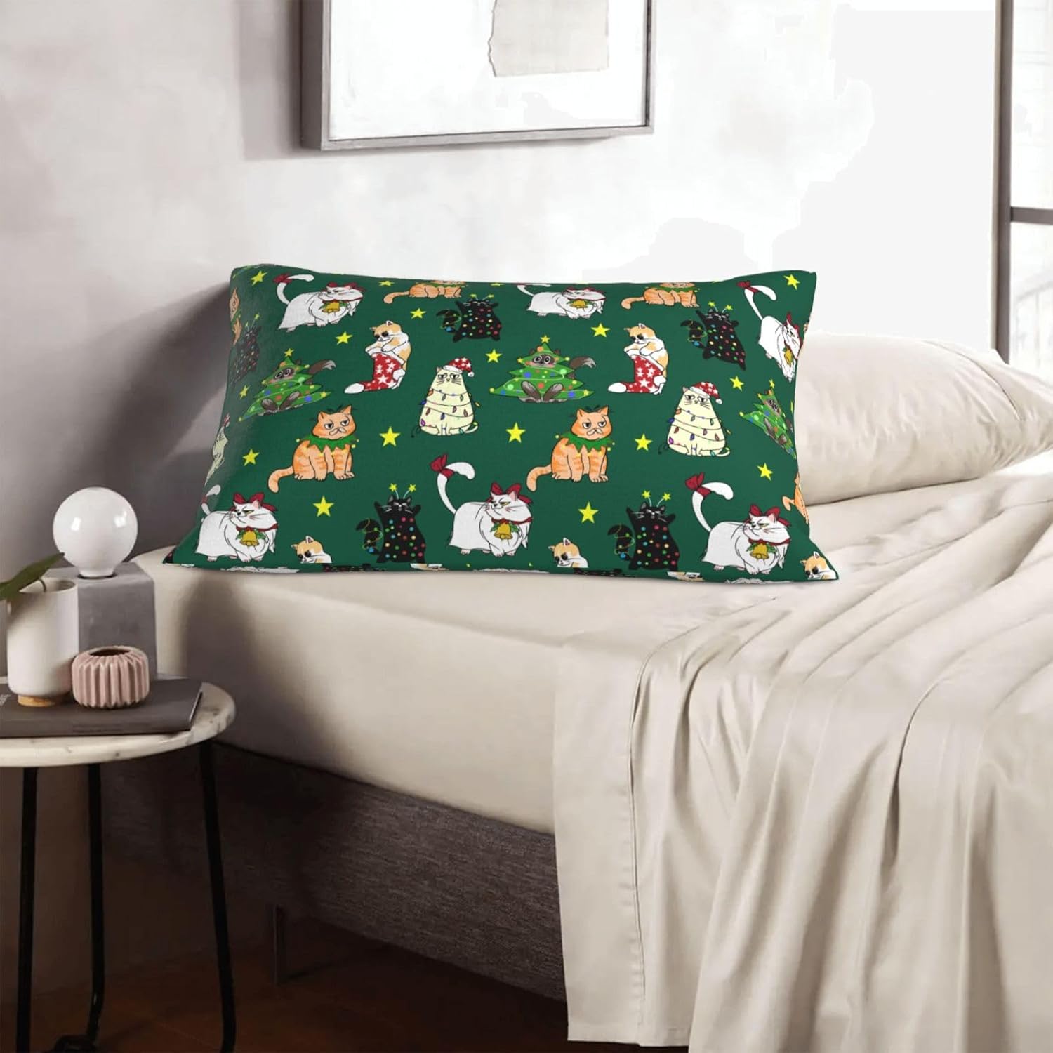 Christmas Cat Pillow Cases 20″x30″ with Hidden Zipper Pillow Case Soft Breathable Rectangular Pillow Covers Pillowcase with Christmas Cat on it