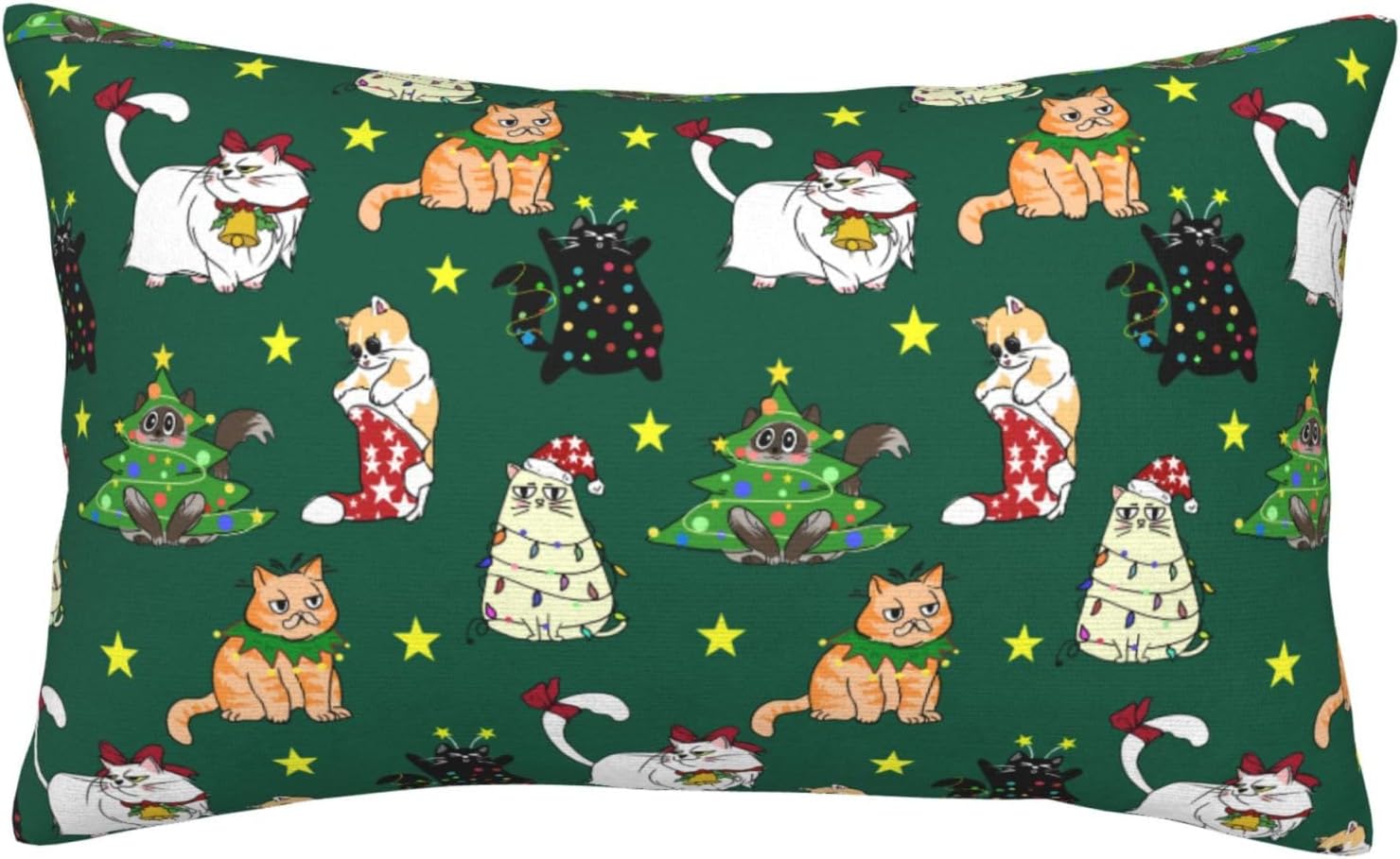 yhogxte Christmas Cat Pillow Cases 20″x30″ with Hidden Zipper Pillow Case Soft Breathable Rectangular Pillow Covers Pillowcase with Christmas Cat on it
