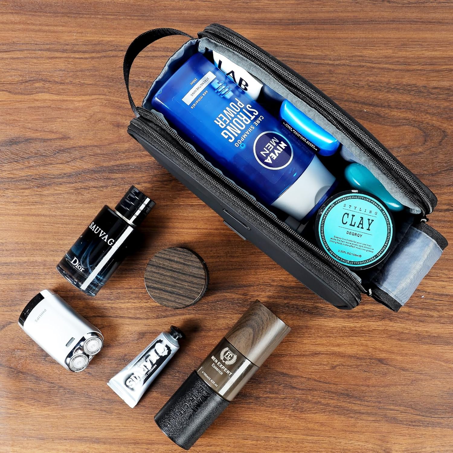 ZEEMO Travel Toiletry Bag for Men, Medium Water-Resistant Double-Sided Full-Open Dopp Kit, Versatile Organizer for Shower and Hygiene Accessories, Bathroom Essentials, Cosmetics, Black